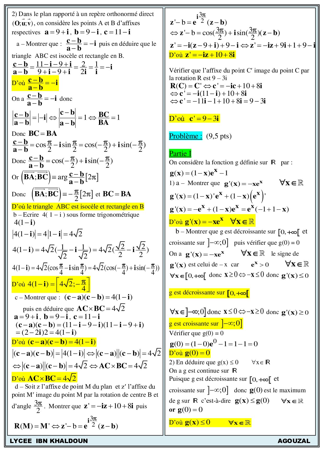 Examens nationaux avec corrigés