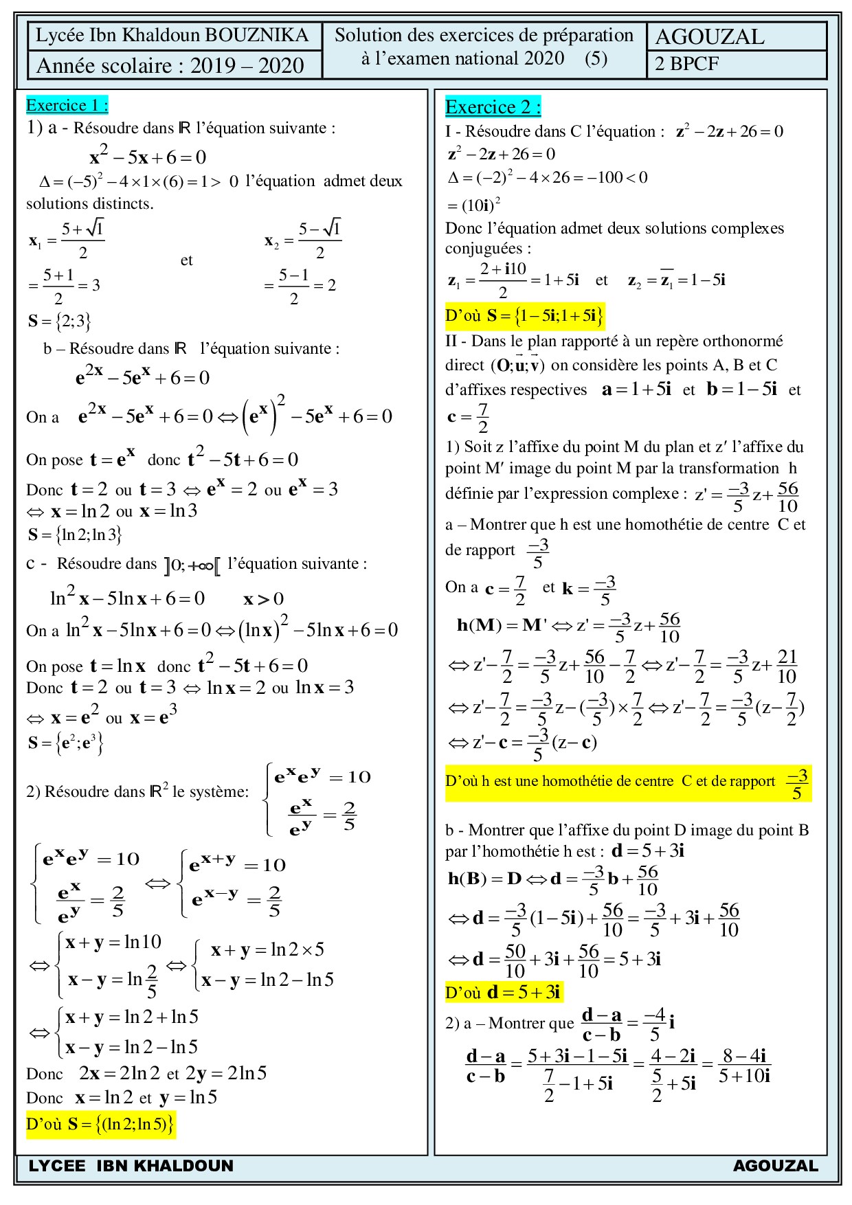 Préparation à l’examen national 2020 - Corrigé série d'exercices 2