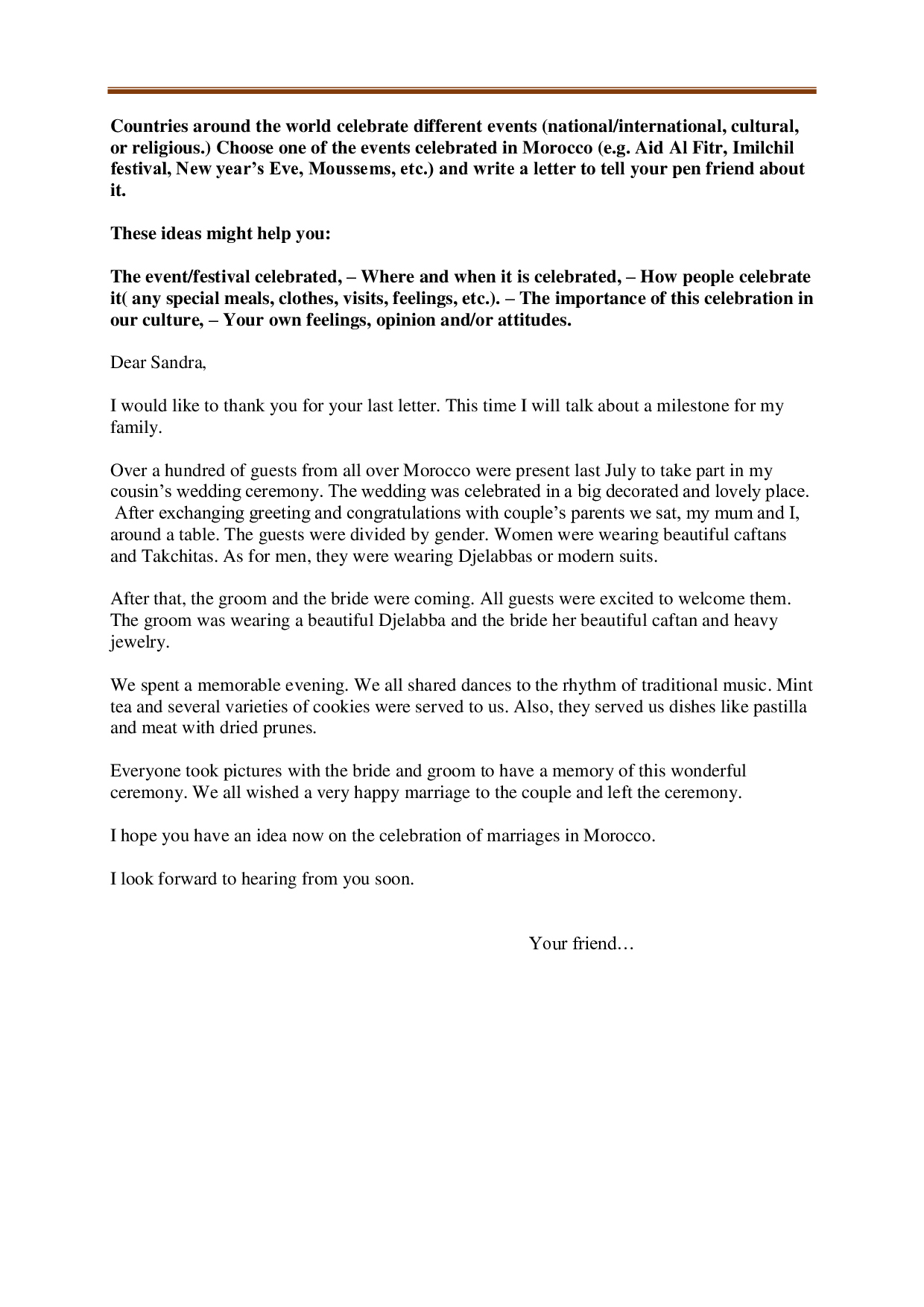 Writing about moroccan wedding