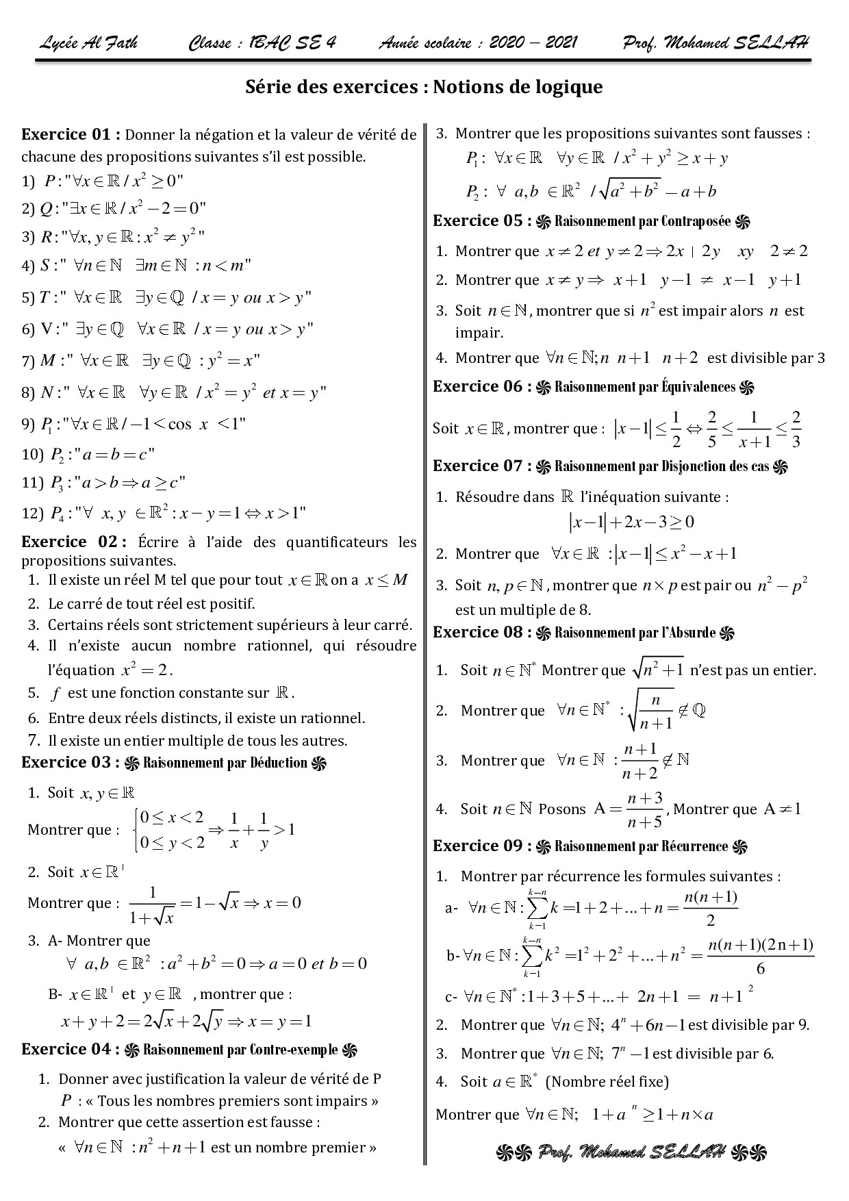Mathématiques 1er BAC Sciences Expérimentales BIOF