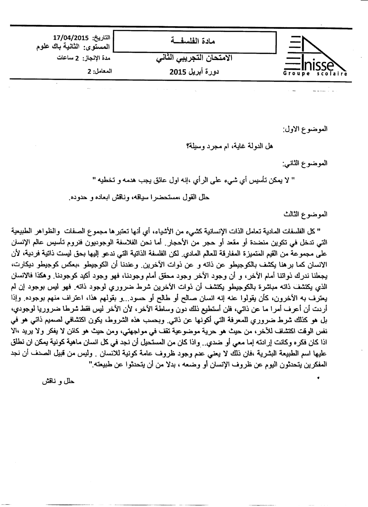 الفلسفة: الثانية باك علوم التدبير المحاسباتي