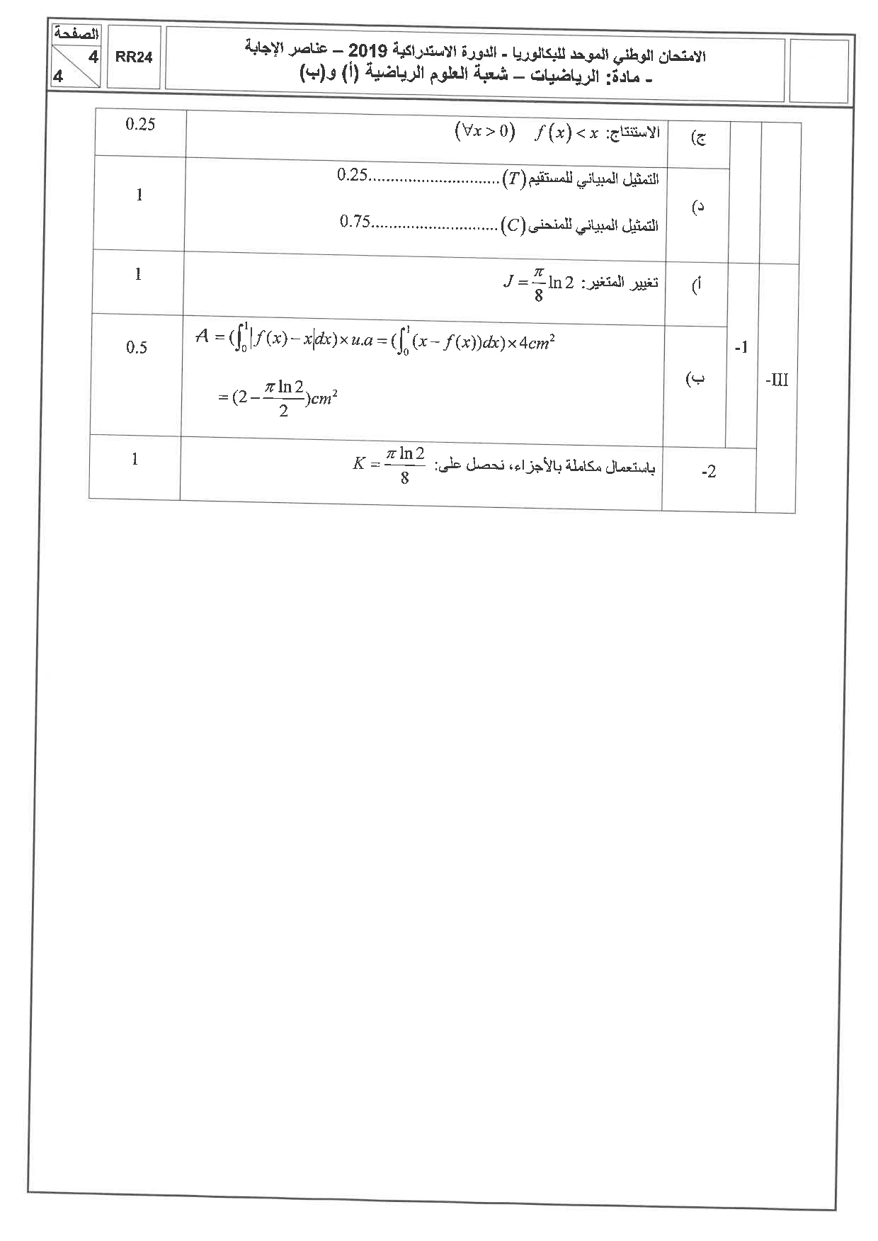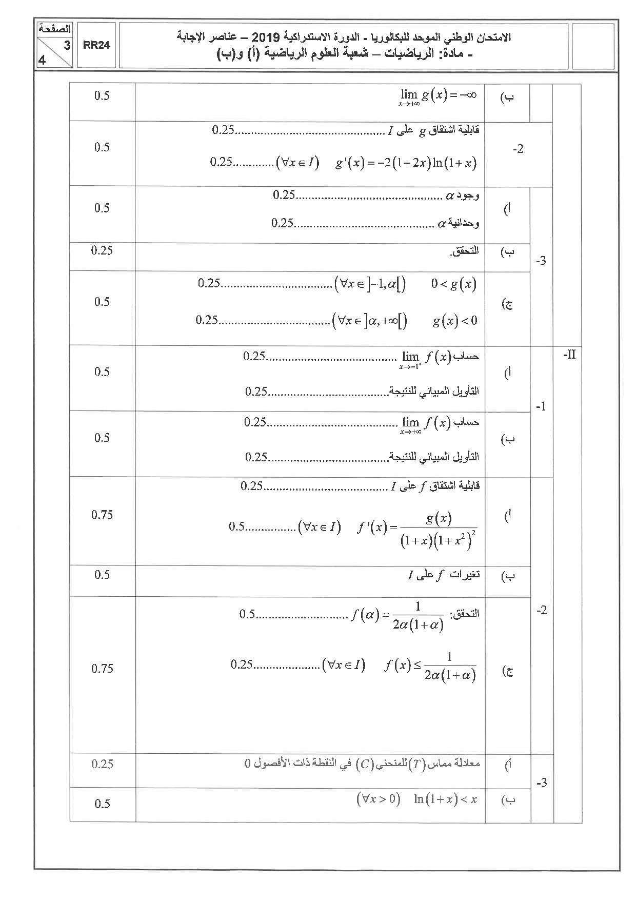 الرياضيات علوم رياضية 2019 الدورة الإستدراكية - التصحيح