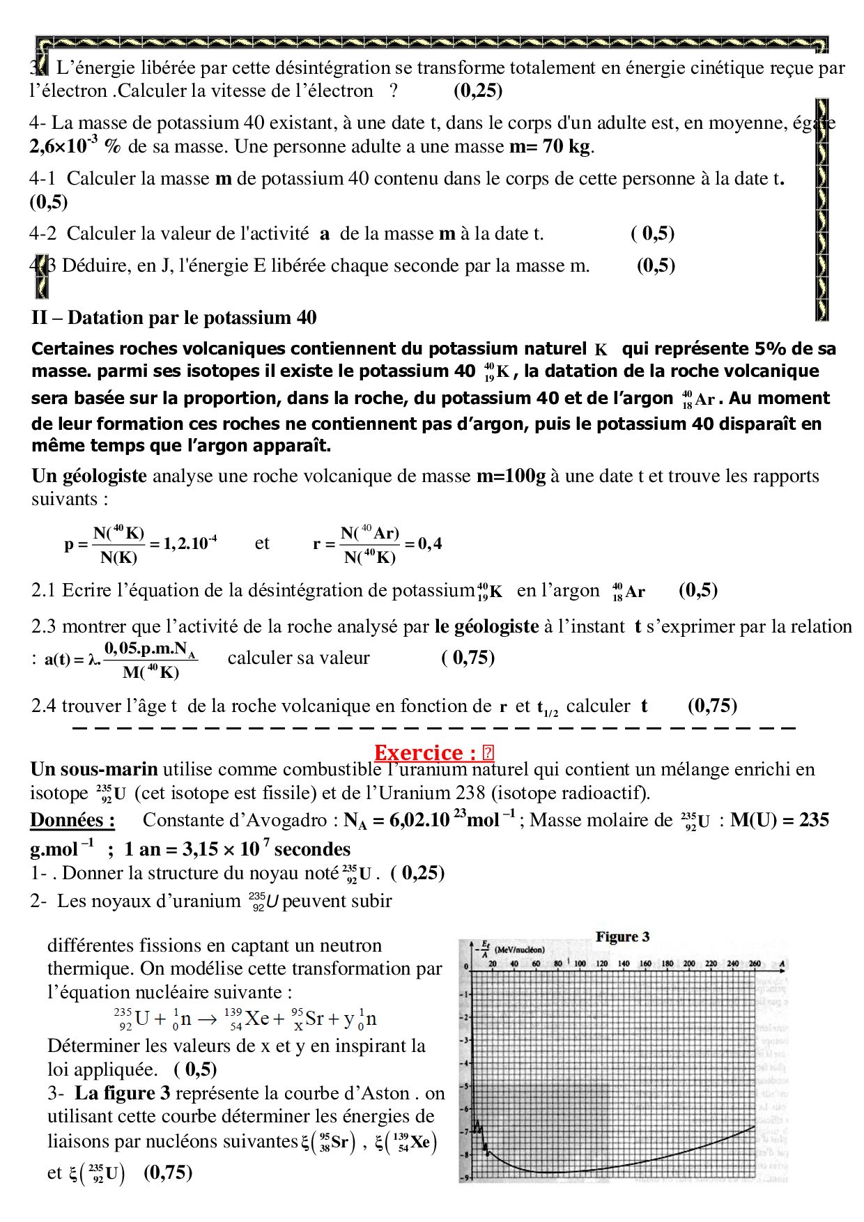 Noyaux, masse et énergie - Exercices non corrigés 9