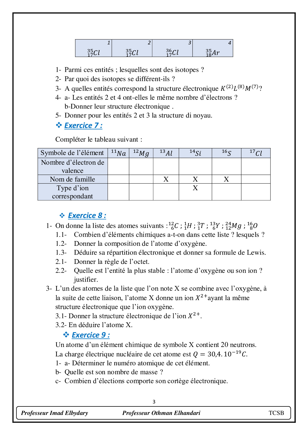 Classification périodique des éléments chimiques - Exercices non corrigés 7