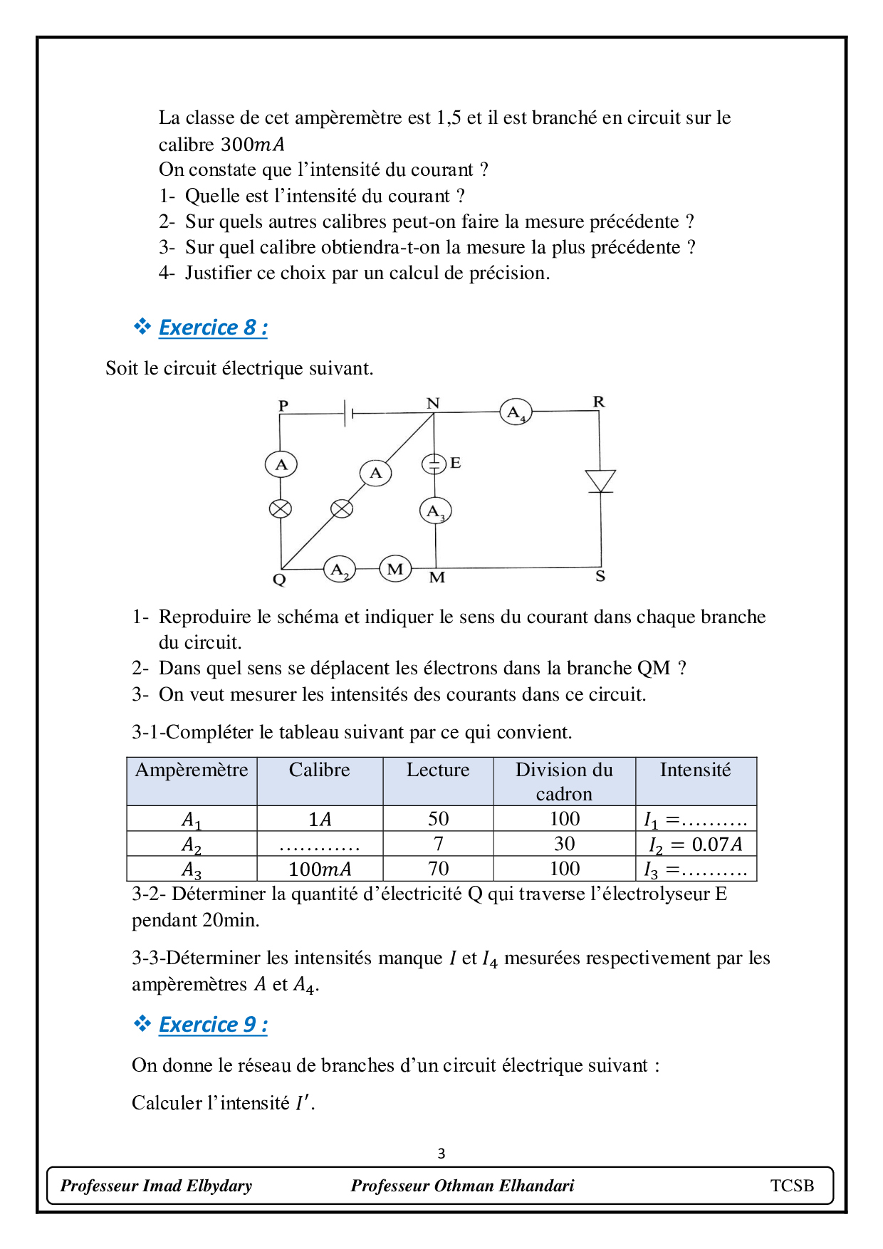 Le courant électrique continu - Exercices non corrigés 6