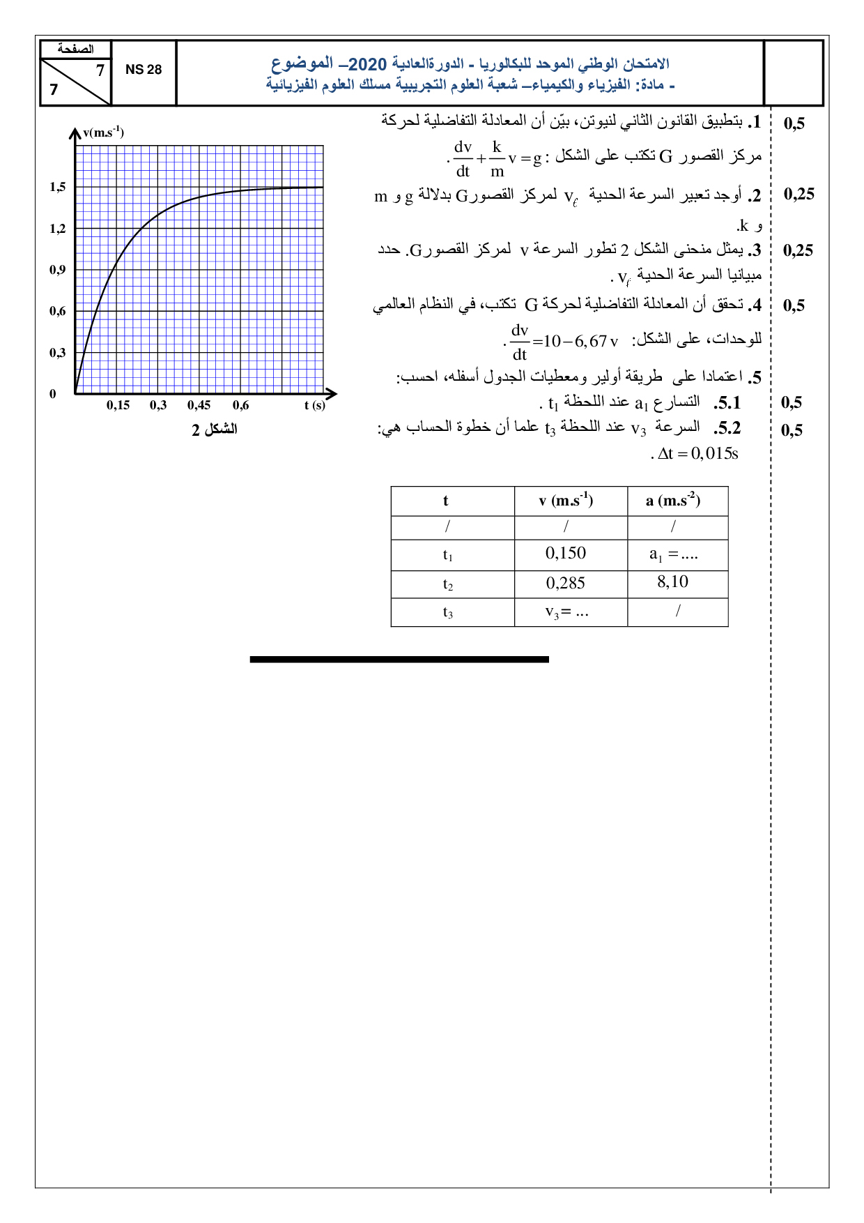 الفيزياء والكيمياء علوم فيزيائية 2020 الدورة العادية - الموضوع