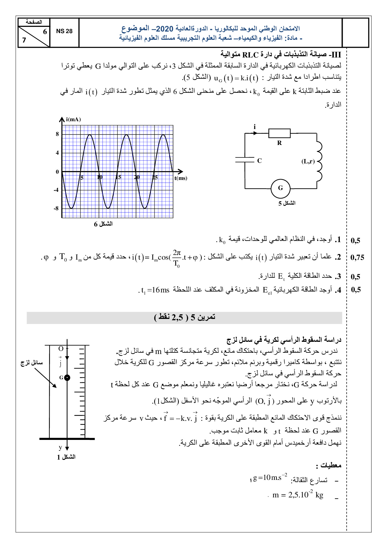 الفيزياء والكيمياء علوم فيزيائية 2020 الدورة العادية - الموضوع