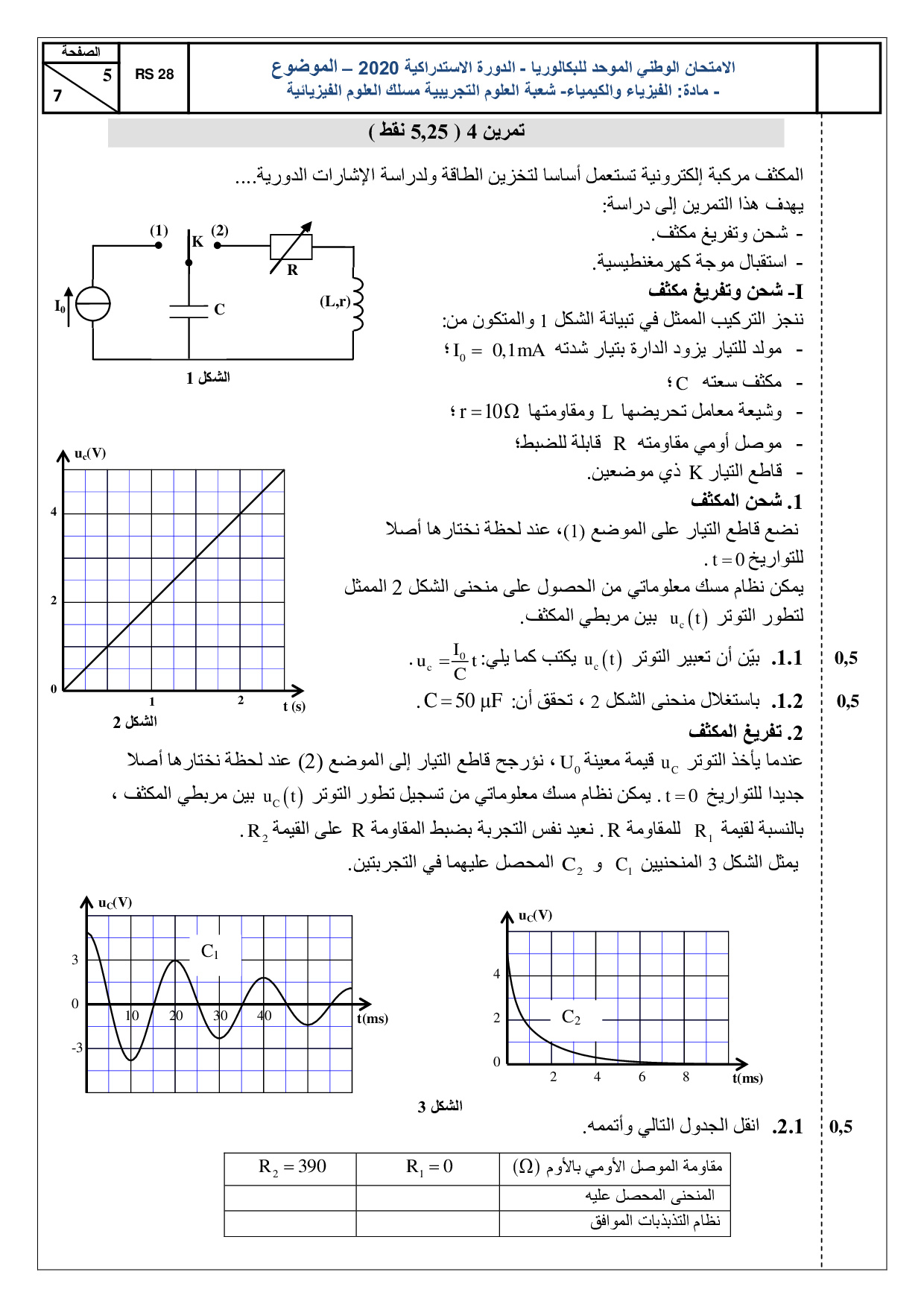 الفيزياء والكيمياء علوم فيزيائية 2020 الدورة الإستدراكية - الموضوع