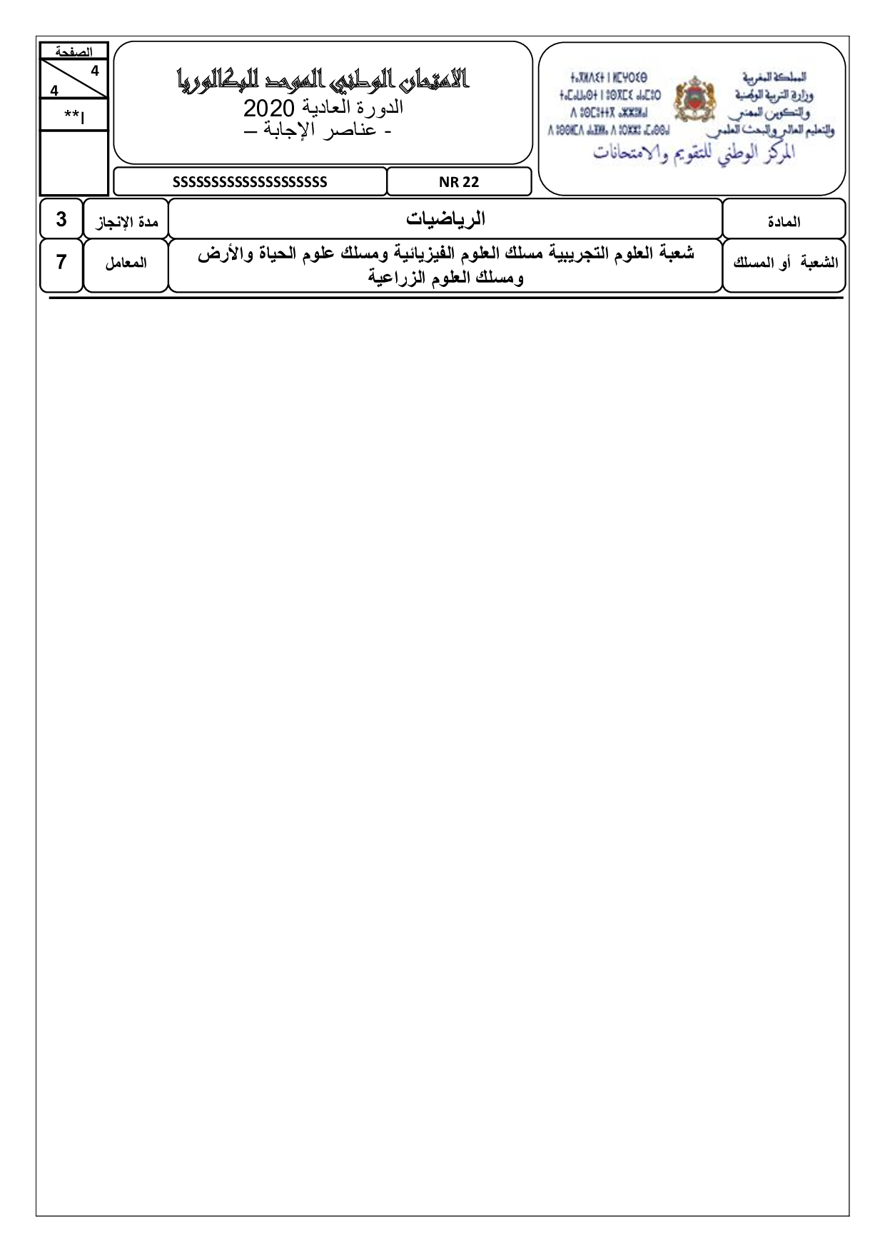 الرياضيات للشعب العلمية والتكنولوجية 2020 الدورة الإستدراكية - الموضوع
