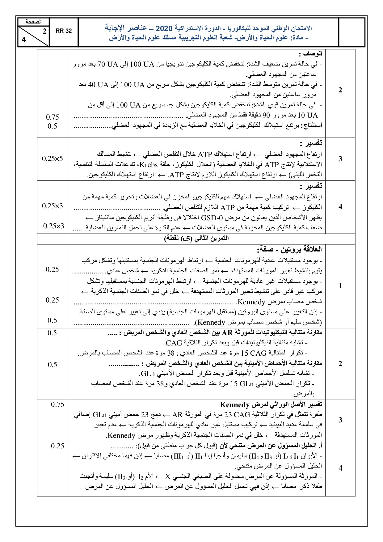 علوم الحياة والأرض (علوم الحياة والأرض) 2020 الدورة الإستدراكية - التصحيح