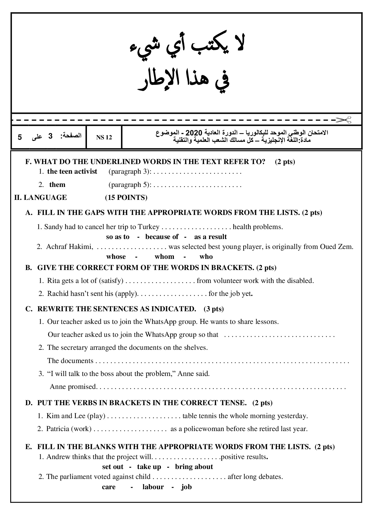 Examen Anglais 2020 Session Normale - Sujet