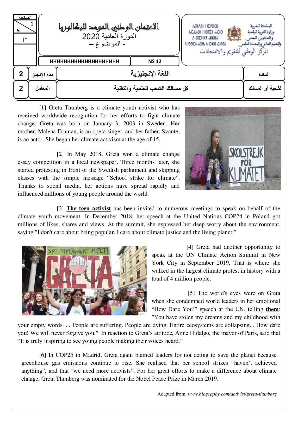 Anglais: 2ème BAC Sciences de la Vie et de la Terre