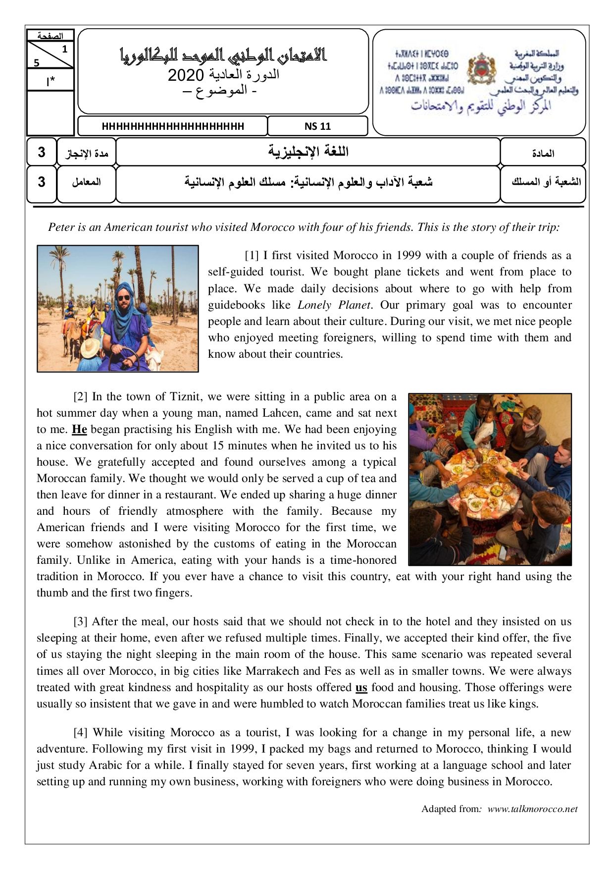 Examen Anglais Science Humaines 2020 Session Normale - Sujet