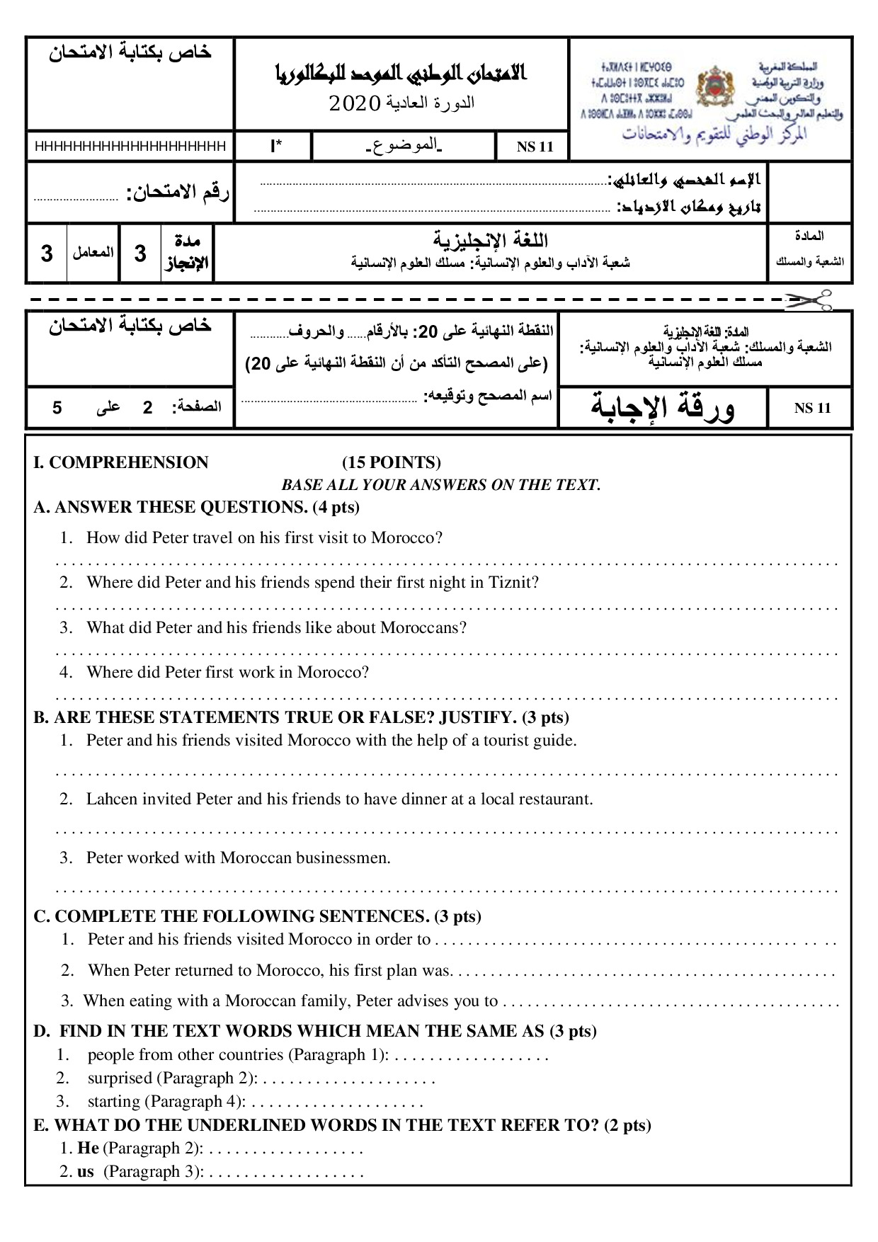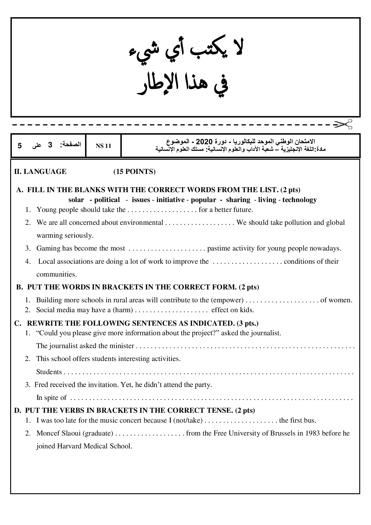 Examen Anglais Science Humaines 2020 Session Normale - Sujet