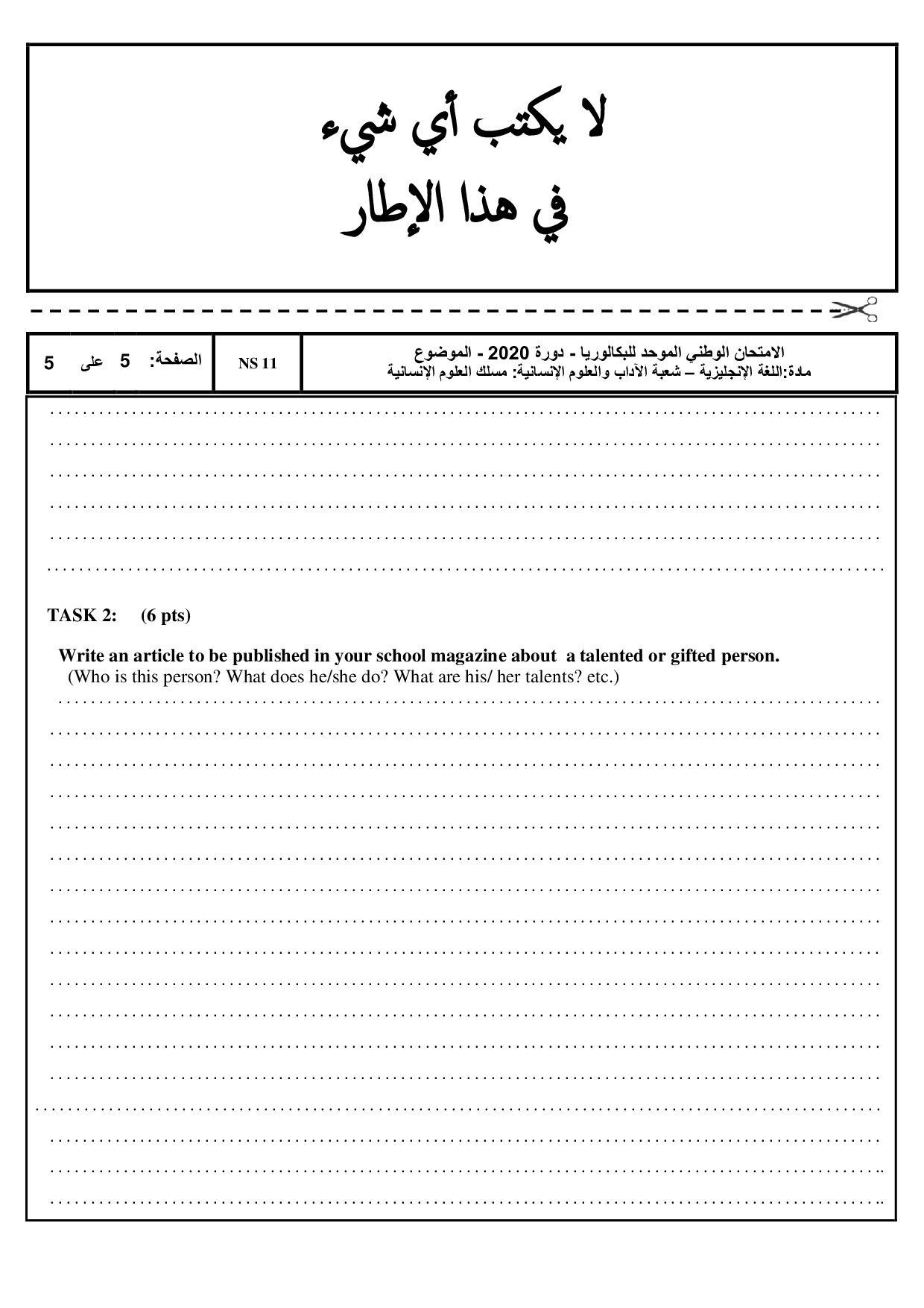 Examen Anglais Science Humaines 2020 Session Normale - Sujet