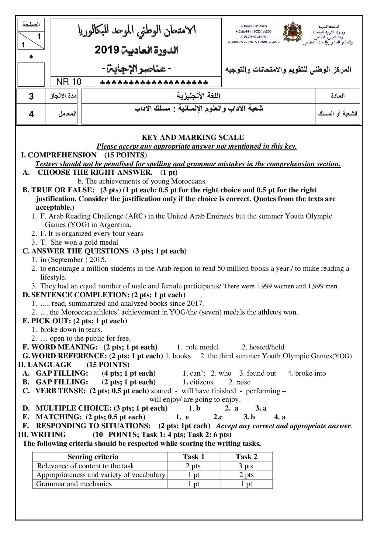 National exams with answers (Letters)