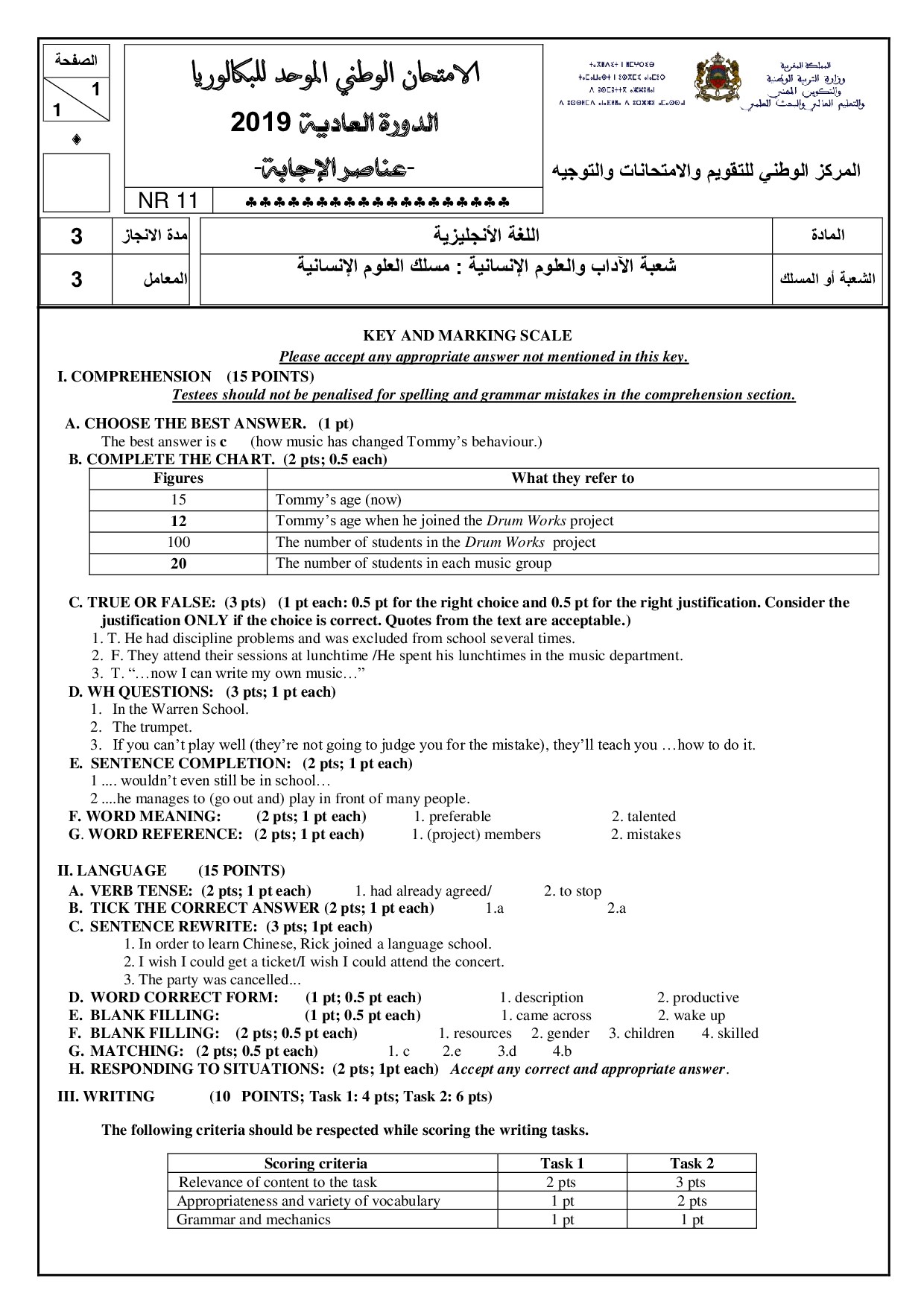 National exams with answers (Humanities)