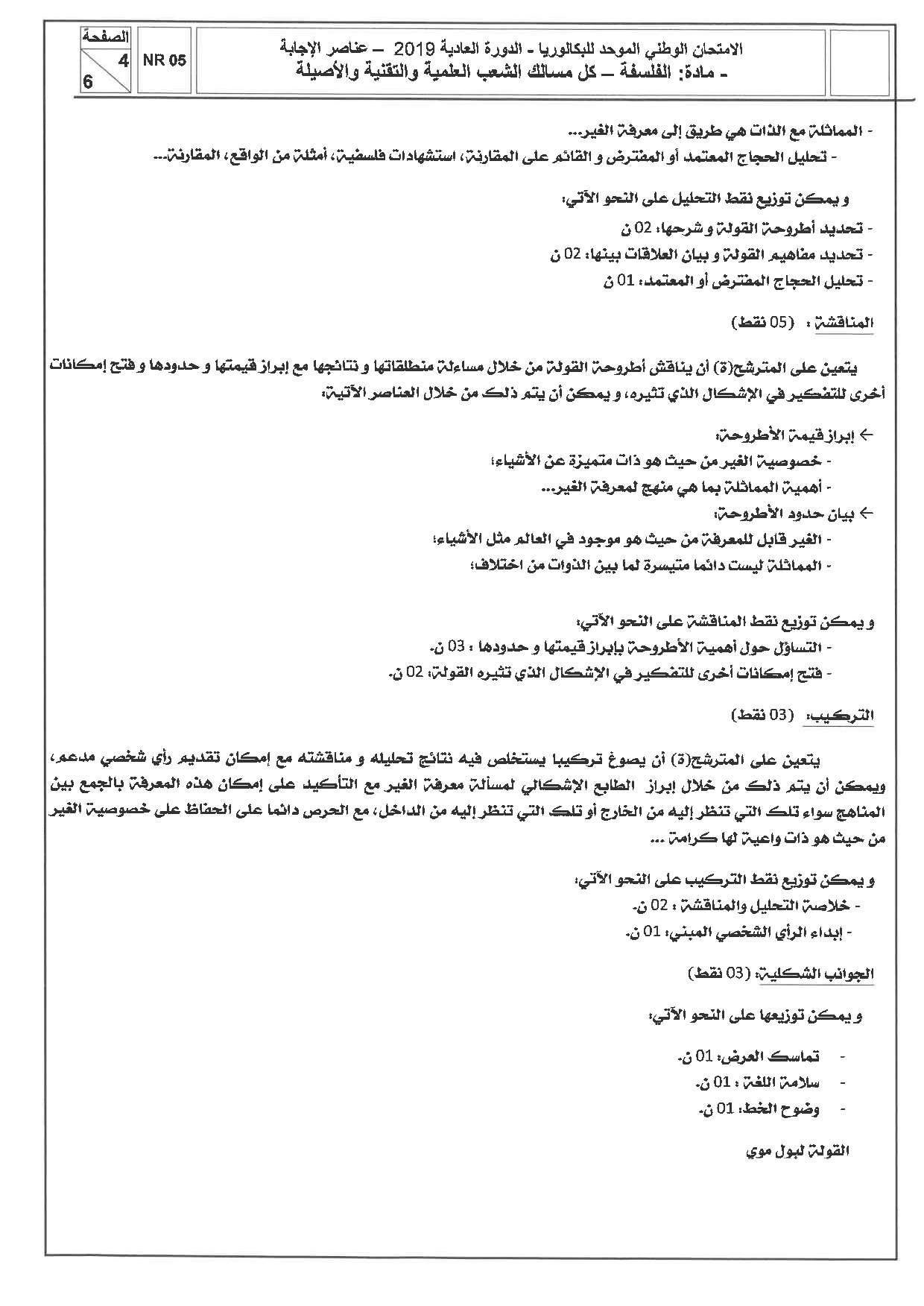 الفلسفة للشعب العلمية والتقنية 2019 الدورة العادية - التصحيح