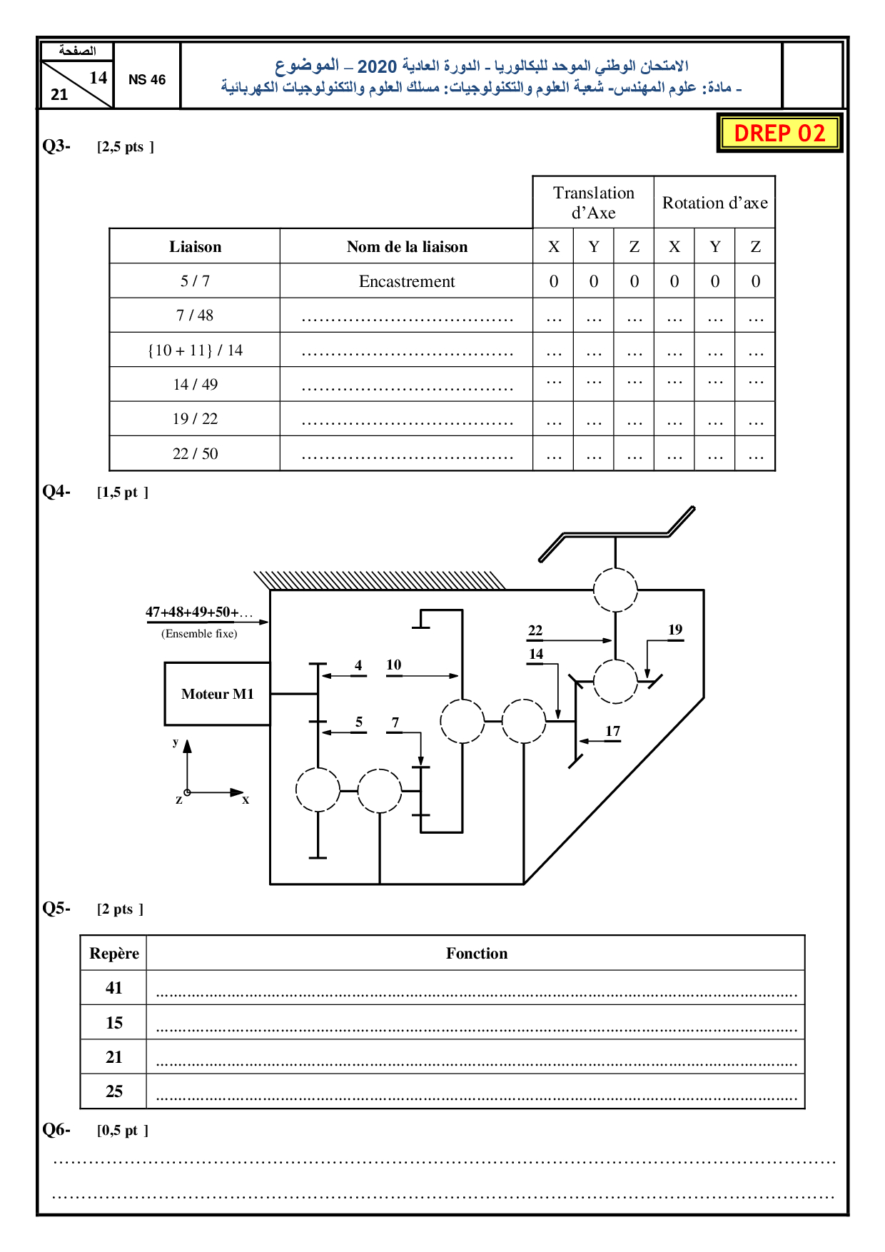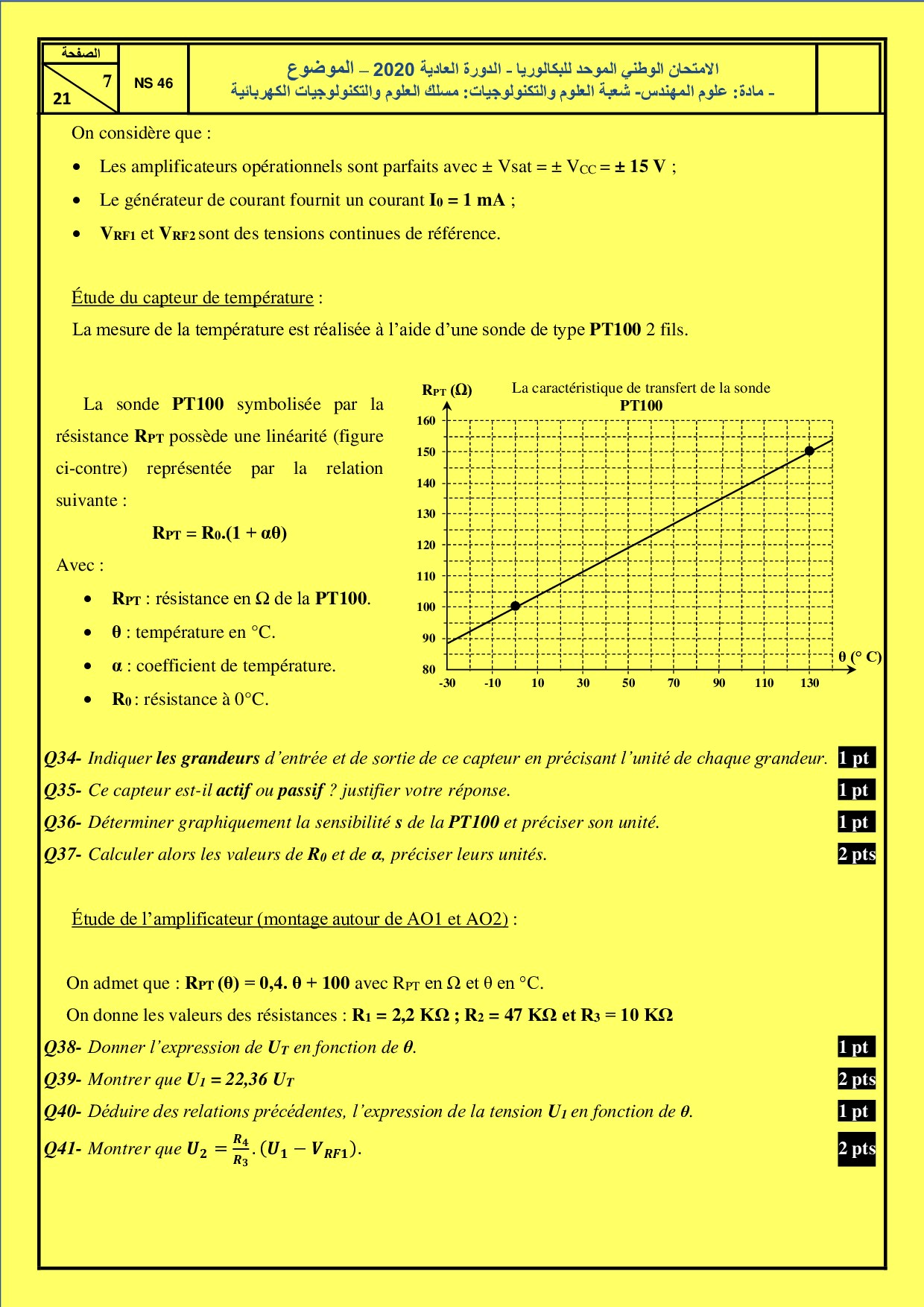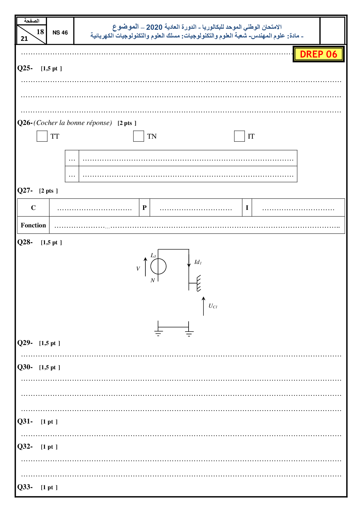 Examen SI 2Bac STE 2020 Session Normale - Sujet