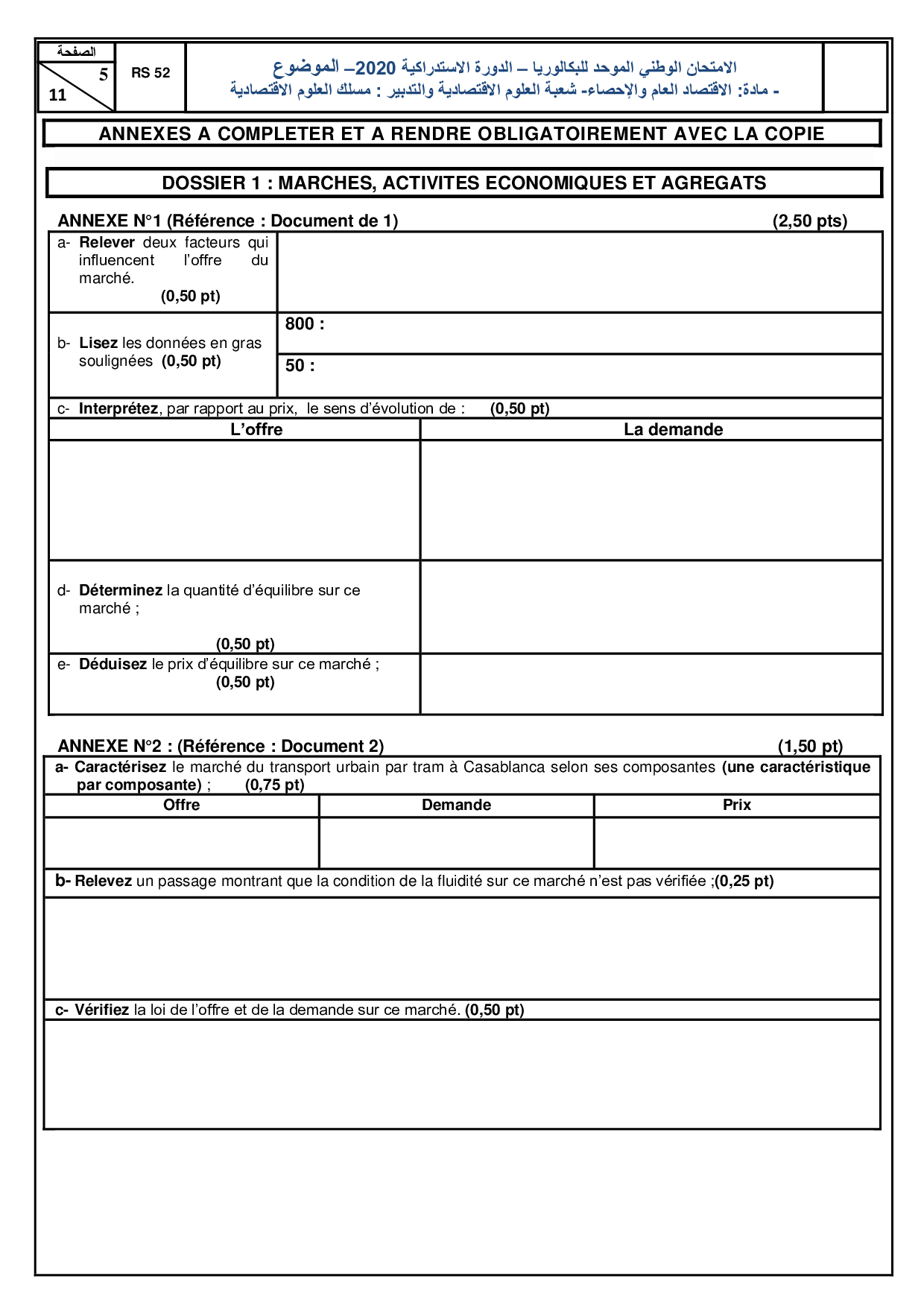 Examen Statistiques 2Bac Eco 2020 Session Rattrapage - Sujet