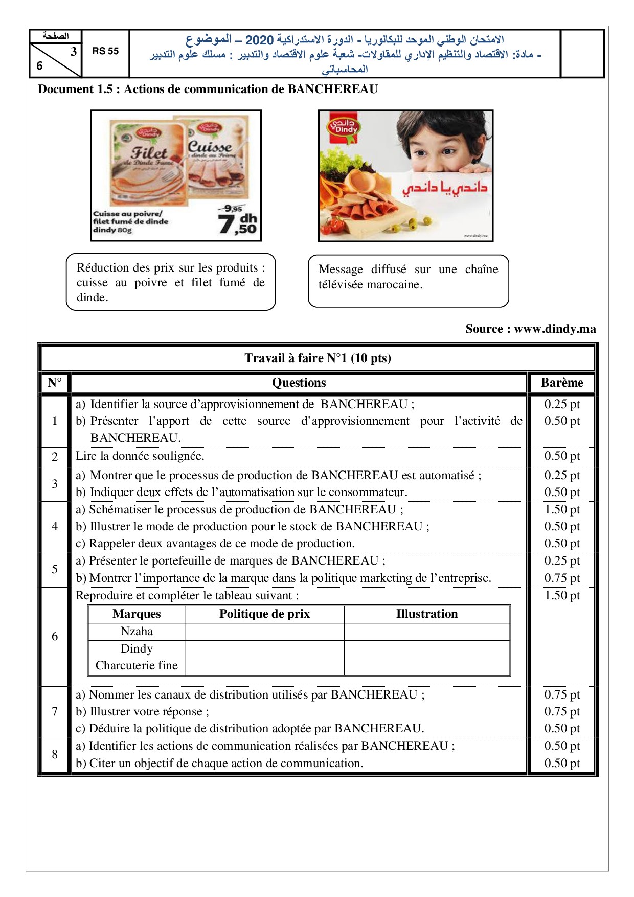 Examen EOAE 2Bac SGC 2020 Session Rattrapage - Sujet