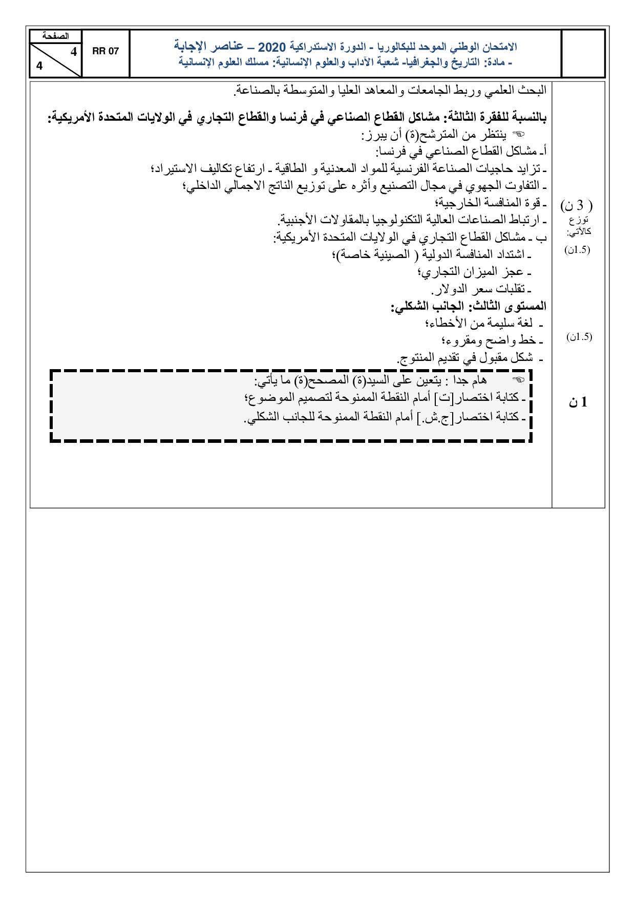 الإجتماعيات (شعبة العلوم الإنسانية) 2020 الدورة الإستدراكية - التصحيح