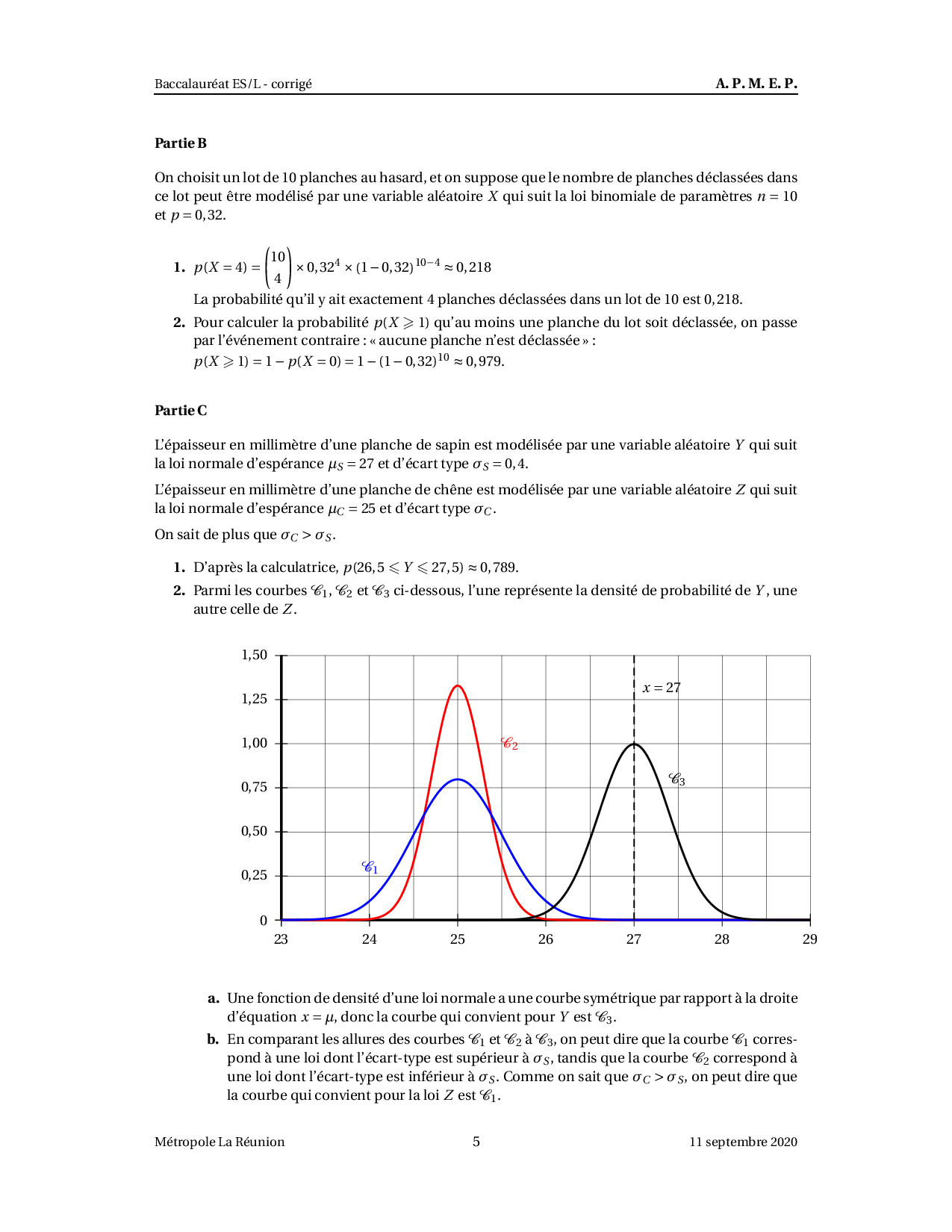 Annale Maths Bac ES-L Métropole - La Réunion septembre 2020 - Corrigé