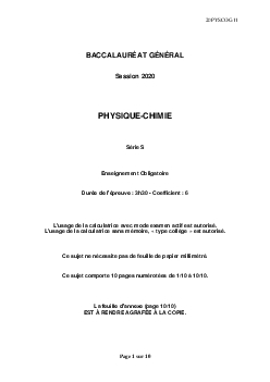 Bac S Physique Chimie Centres Etrangers Afrique 2020 - Sujet