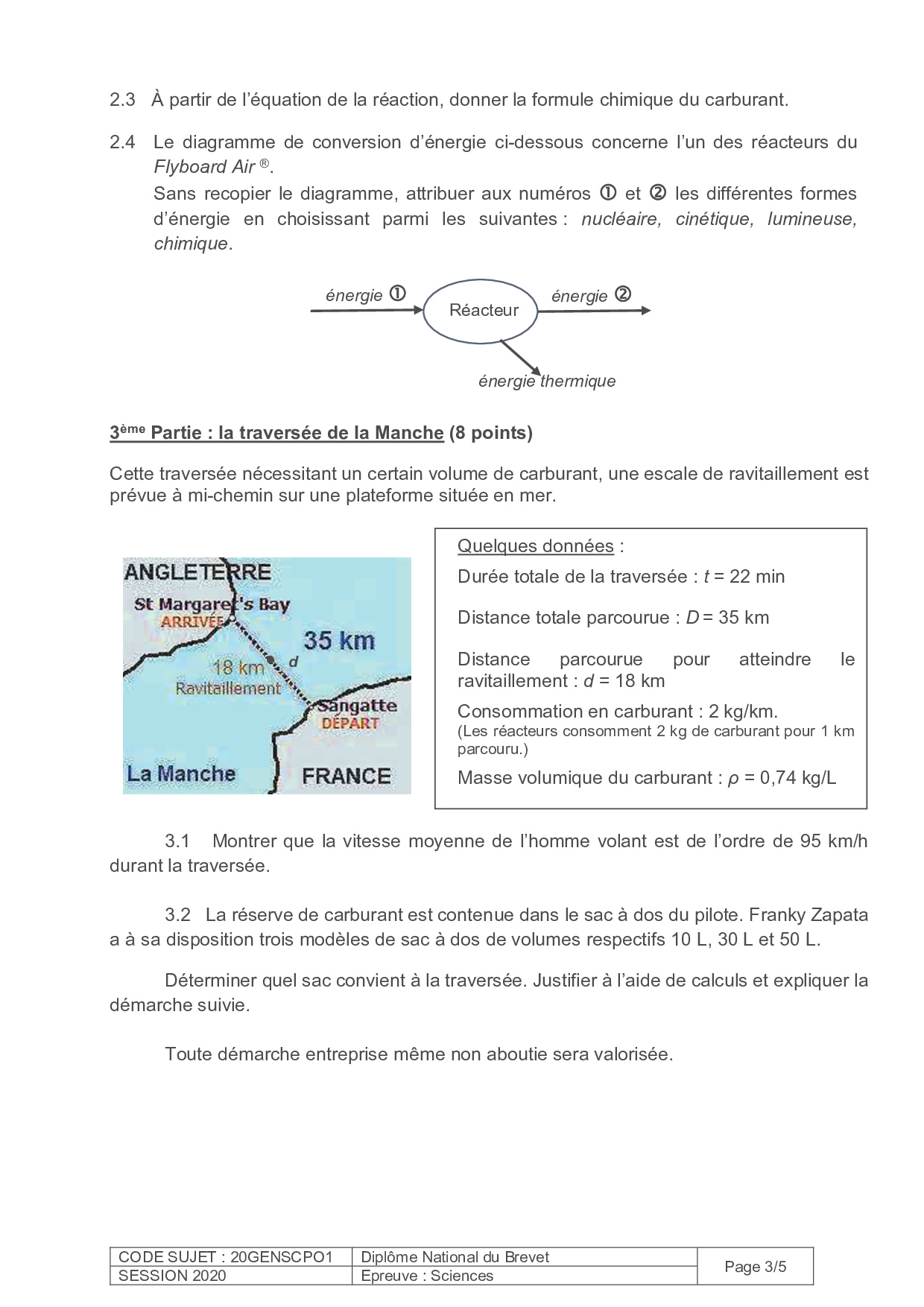 Brevet Physique et SVT Polynésie 2020 - Sujet