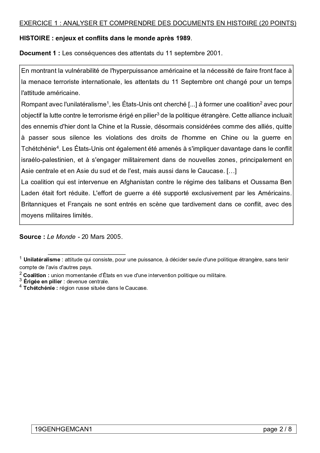 Brevet Histoire-Géographie EMC 2019 Amérique du Nord - Corrigé
