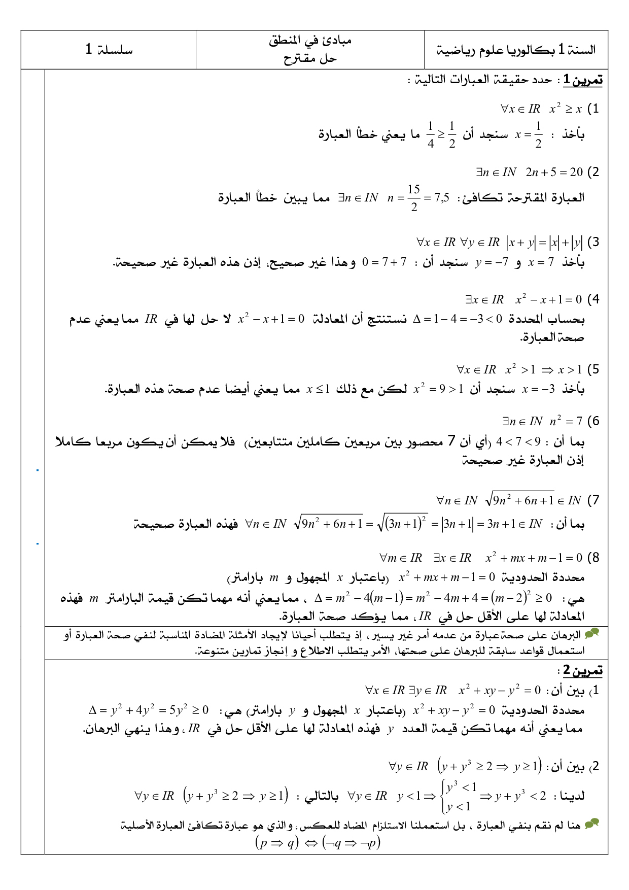 مبادئ في المنطق - تصحيح سلسلة التمارين 1
