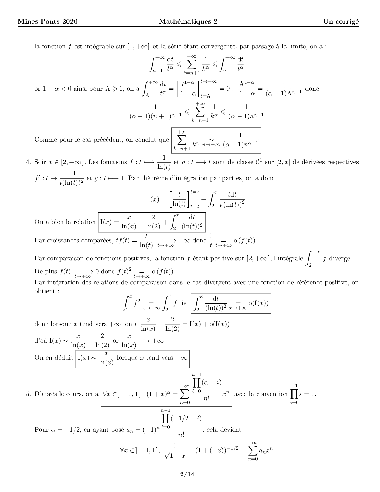 Mines-Ponts MP 2020 Maths 2 - Corrigé