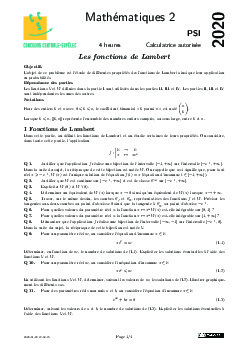 Centrale-Supelec PSI 2020 Maths 2 - Sujet