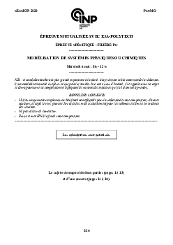 CCP PC 2020 Modélisation de Systèmes Physiques ou Chimiques - Sujet
