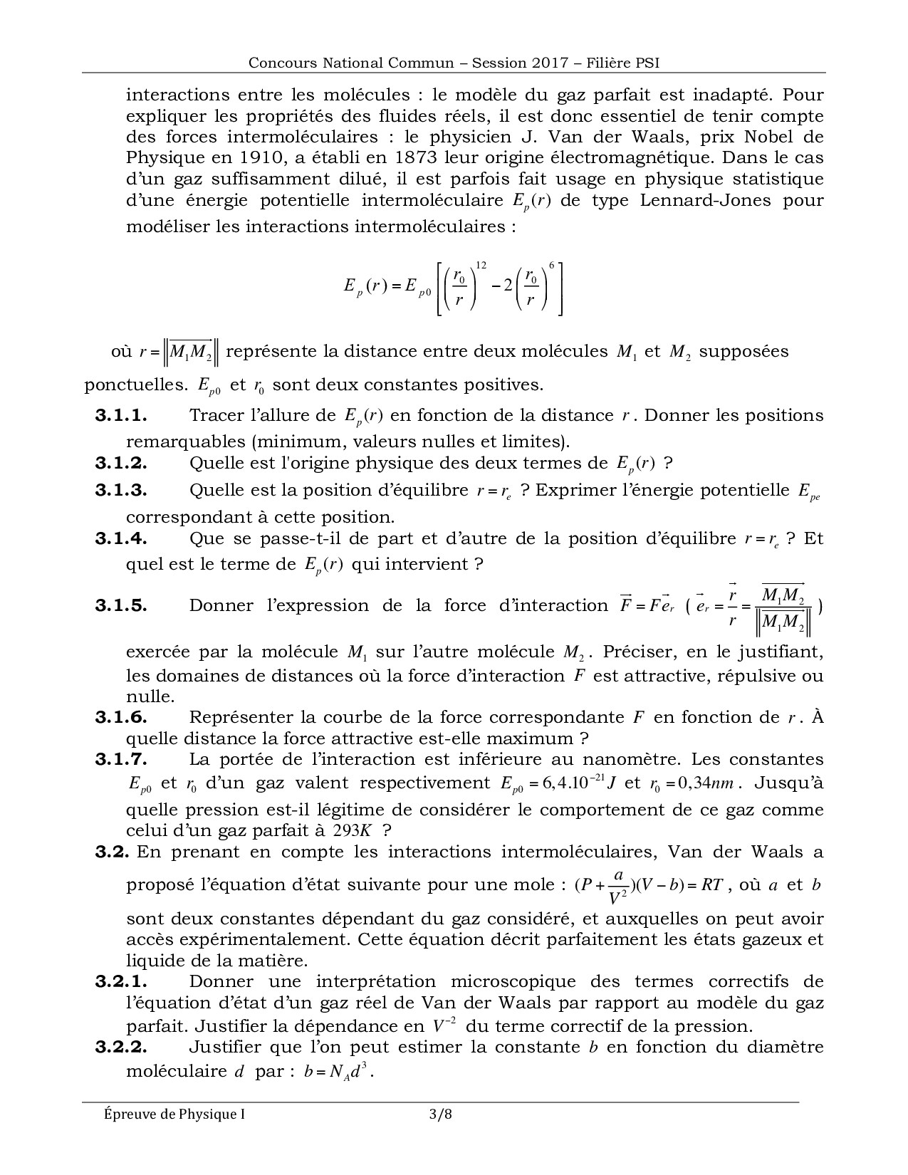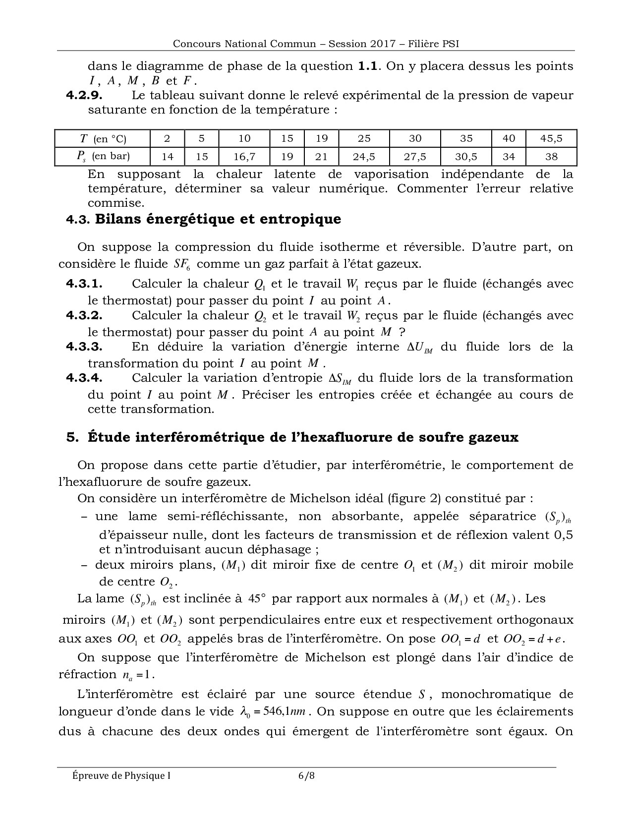 Concours Physique et Chimie PSI