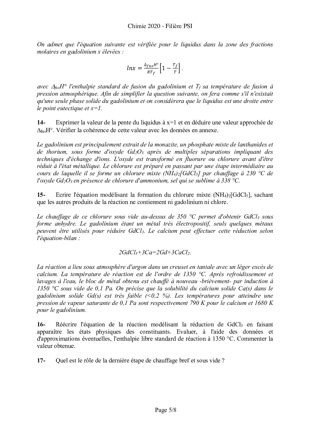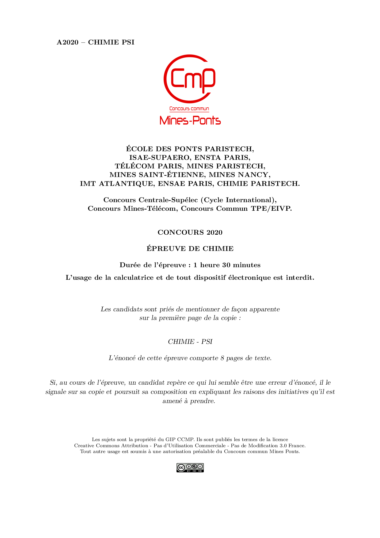 Mines-Ponts PSI 2020 Chimie - Sujet