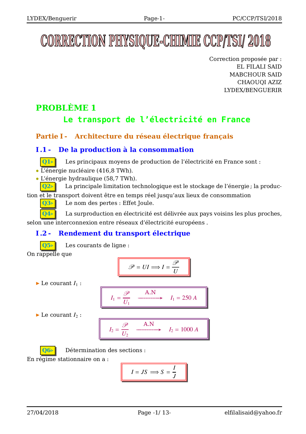 CCP TSI 2018 Physique-Chimie - Corrigé