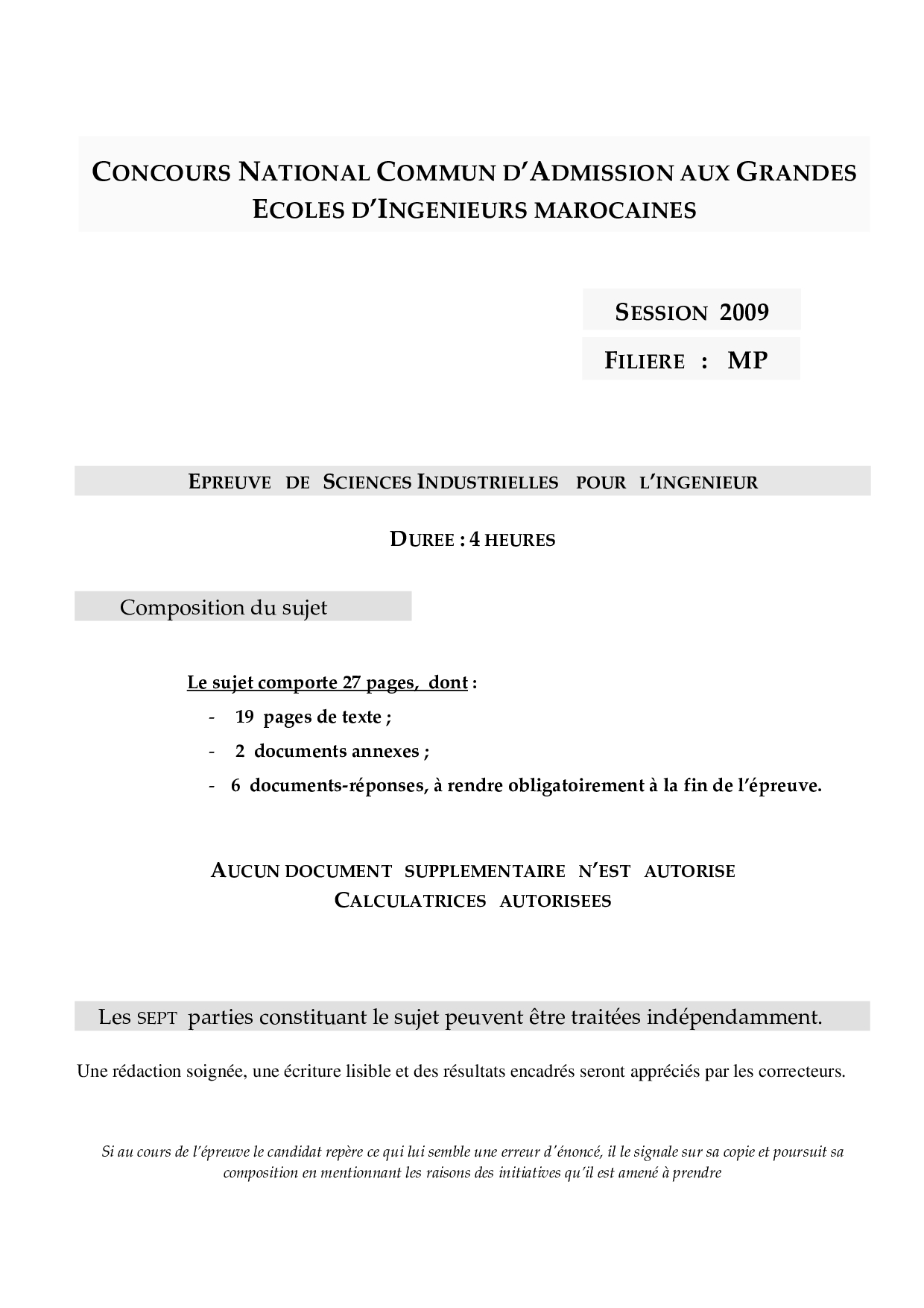CNC MP 2009 SII - Sujet