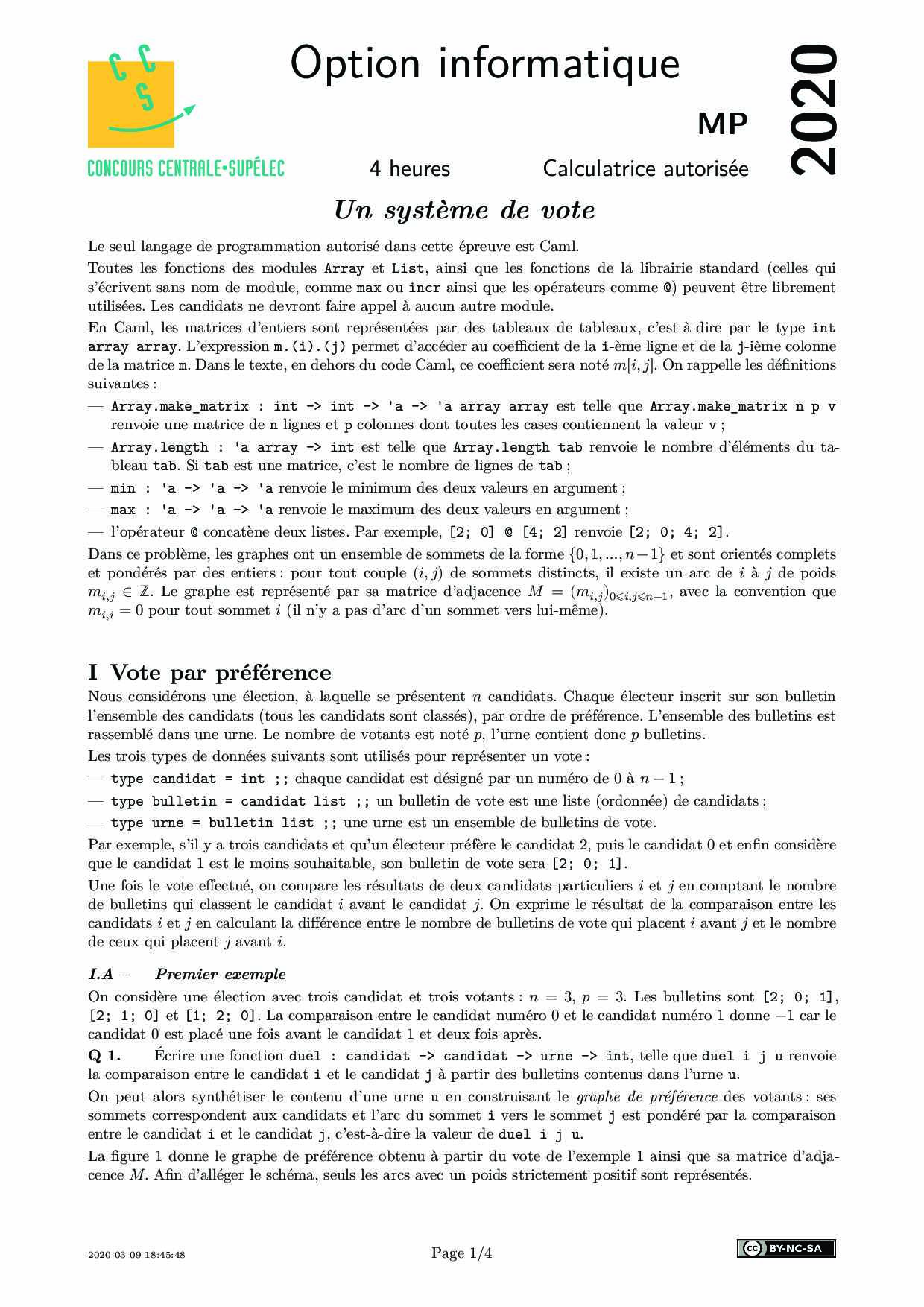 Centrale-Supelec MP 2020 Informatique Option Info - Sujet