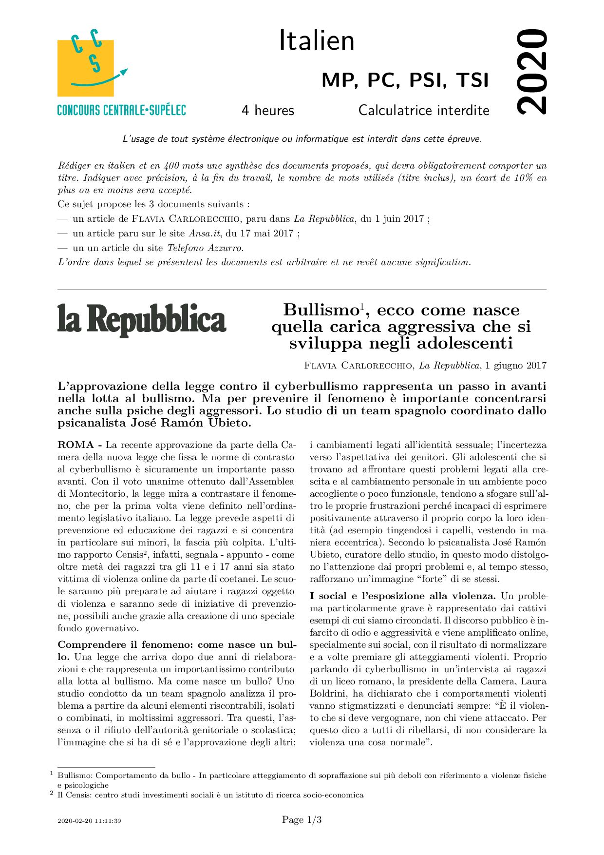 Centrale-Supelec Langues vivantes 2020