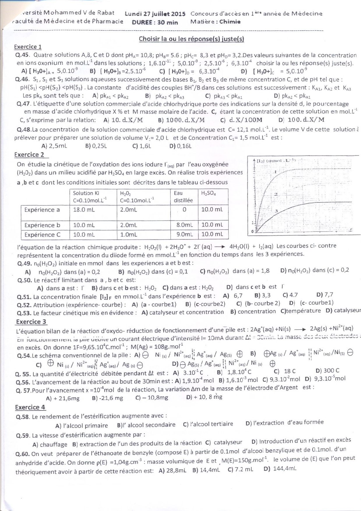 Concours d'accès à la Faculté de Médecine et de Pharmacie (Rabat) 2015 - Sujet