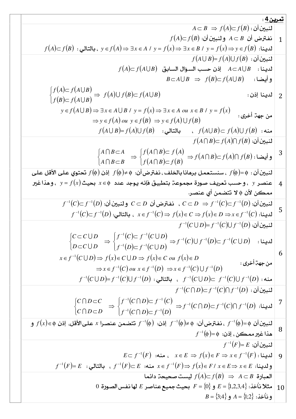 المجموعات والتطبيقات - تصحيح سلسلة التمارين 3