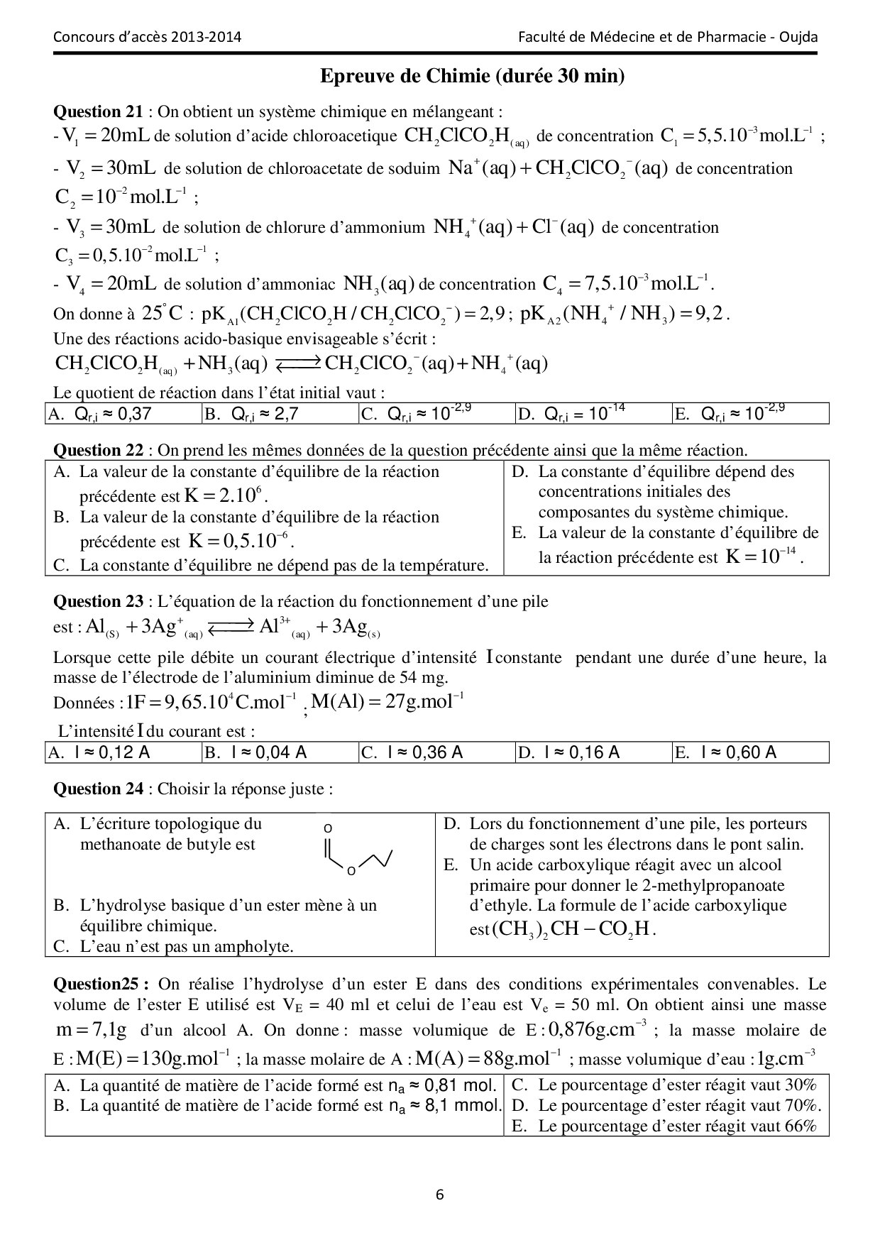 Concours d'accès à la Faculté de Médecine et de Pharmacie (Oujda) 2013 - Sujet