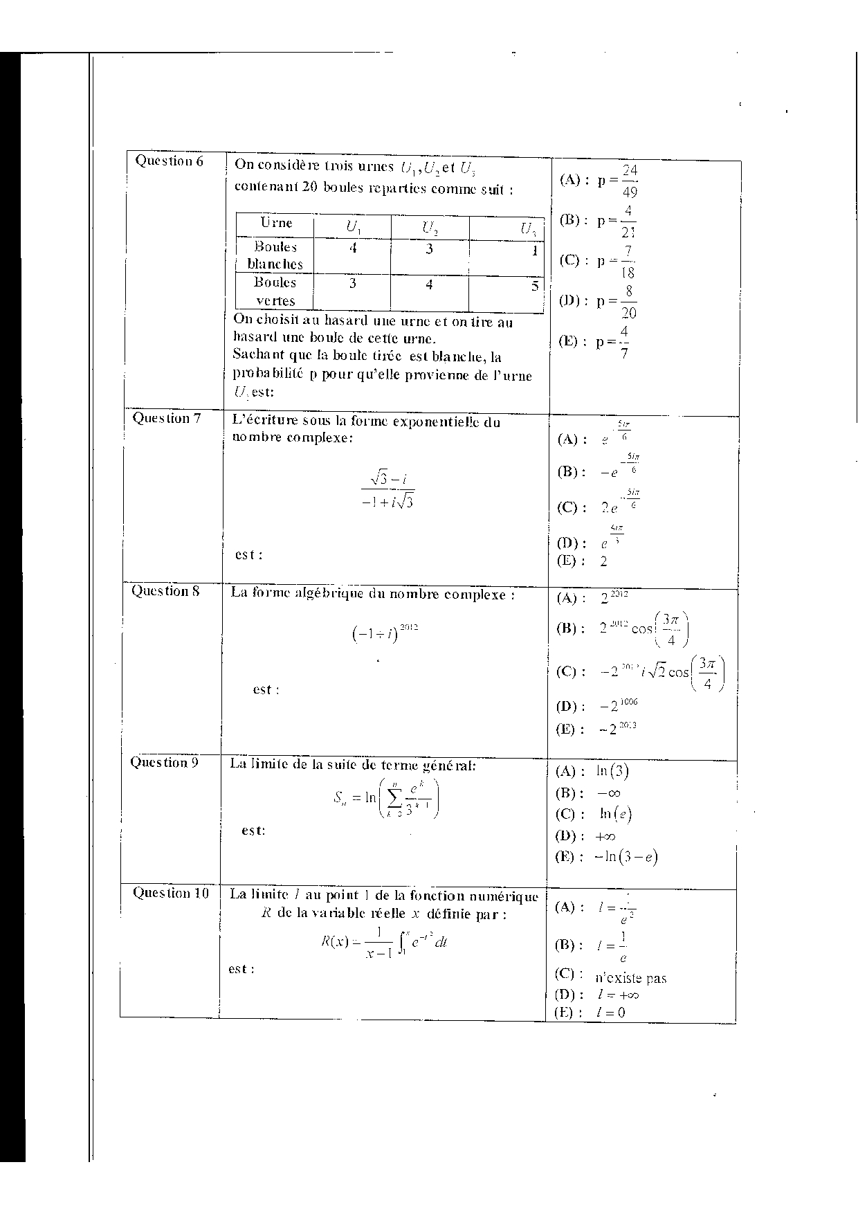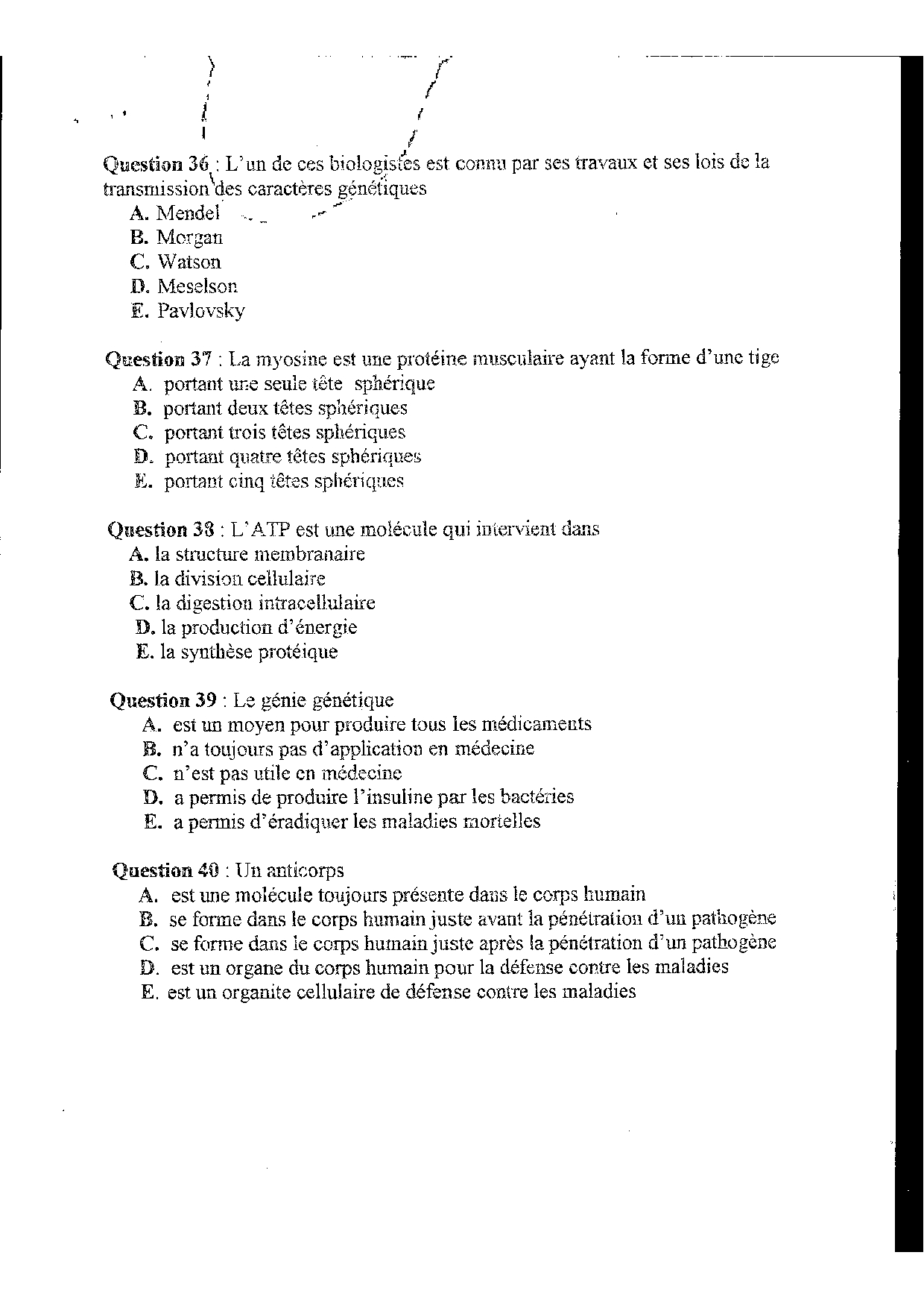 Concours d'accès à la Faculté de Médecine et de Pharmacie (Fès) 2012 - Sujet