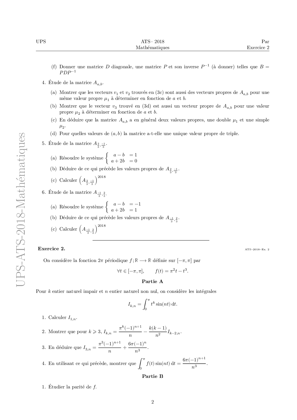 Concours ATS 2018 - Mathématiques (Corrigé)