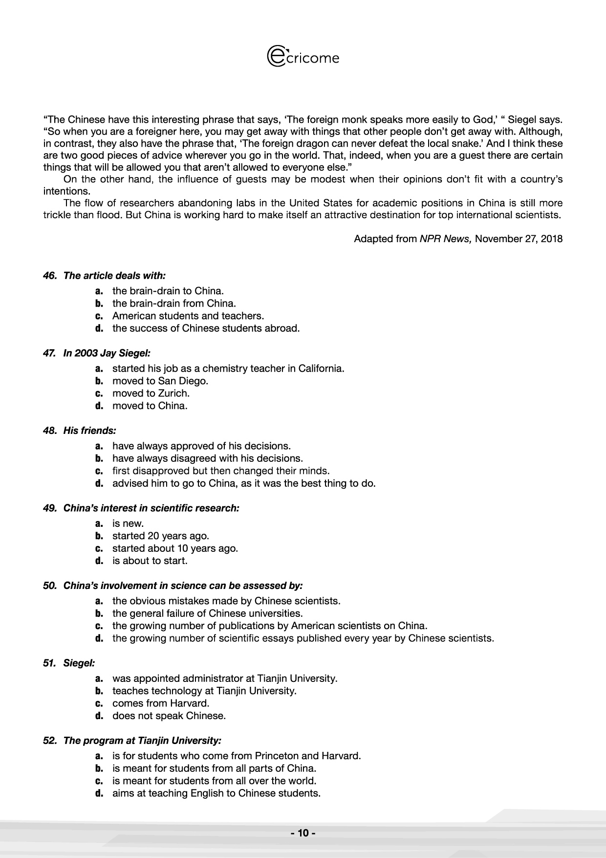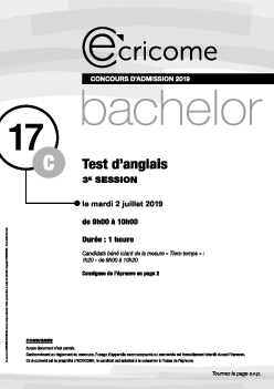 Concours Ecricome Bachelor 2019 - Anglais 3 (Sujet)