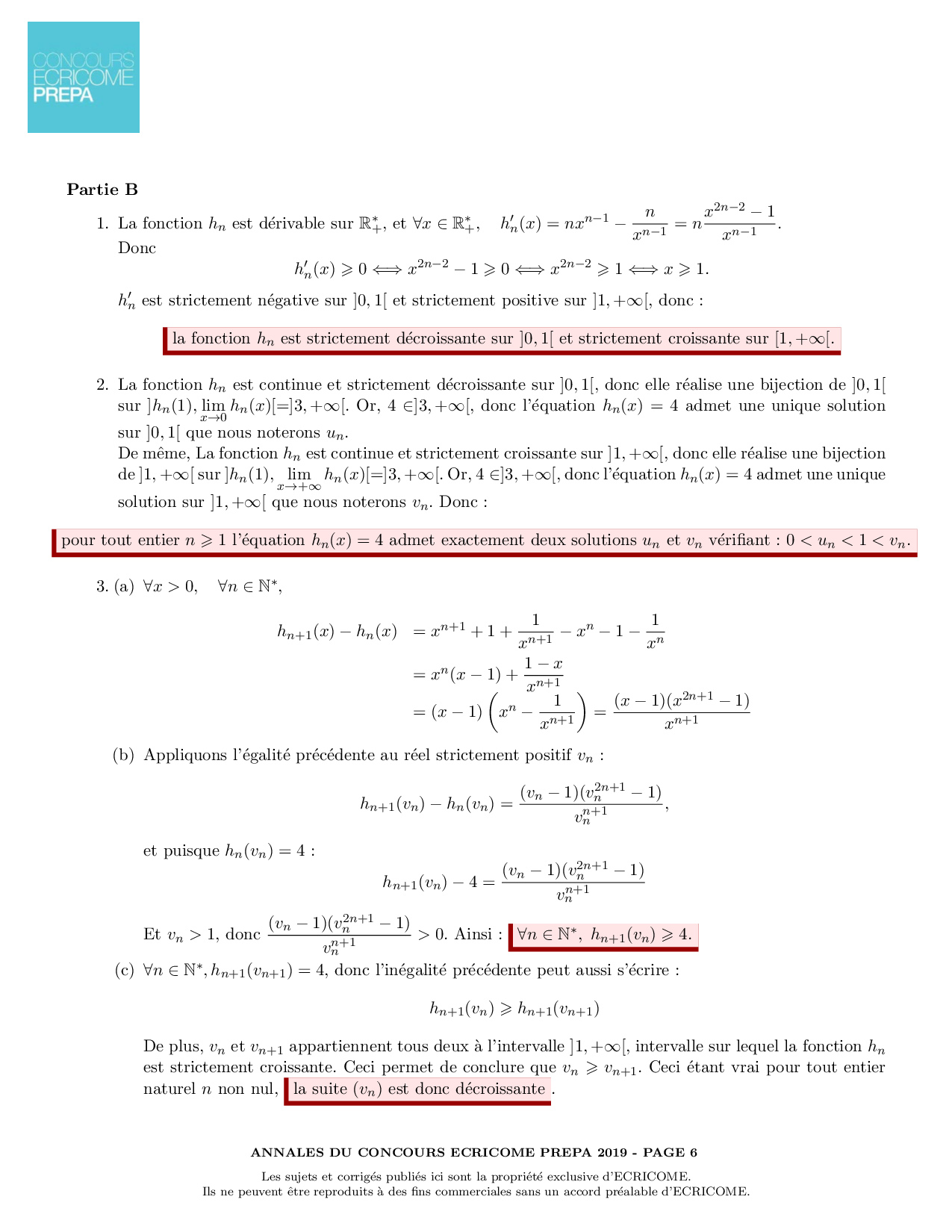 Concours Ecricome Prépa 2019 - Mathématiques (Option économique - Corrigé)