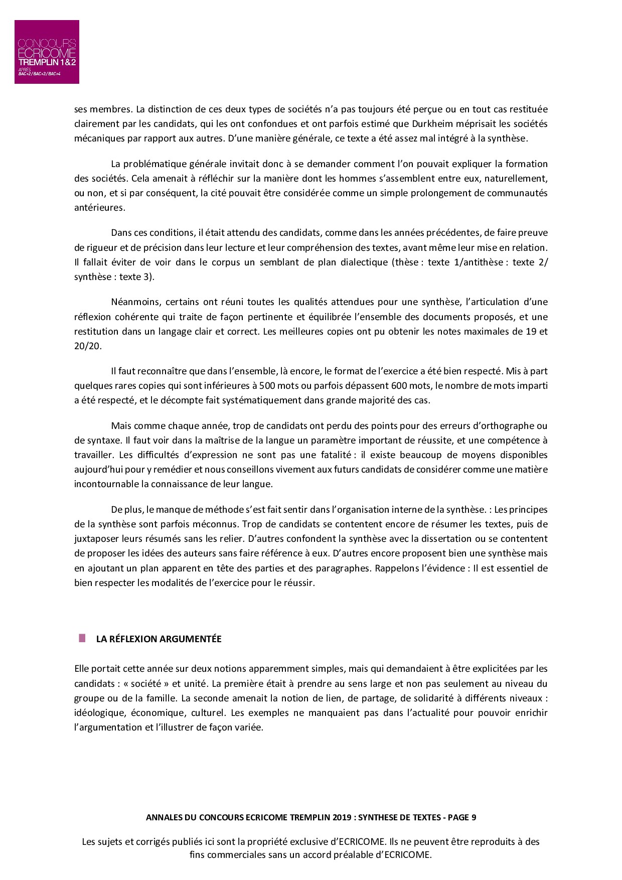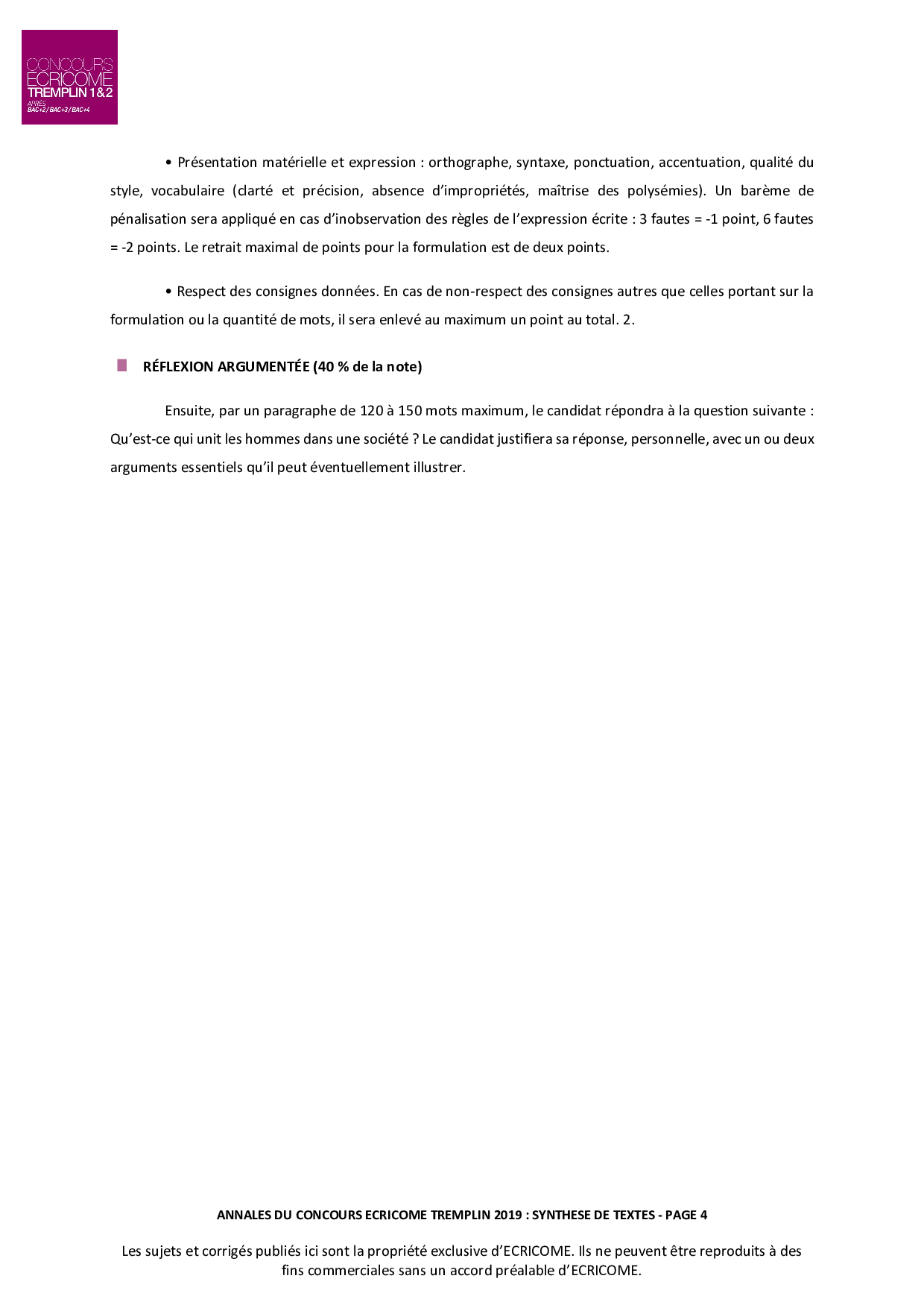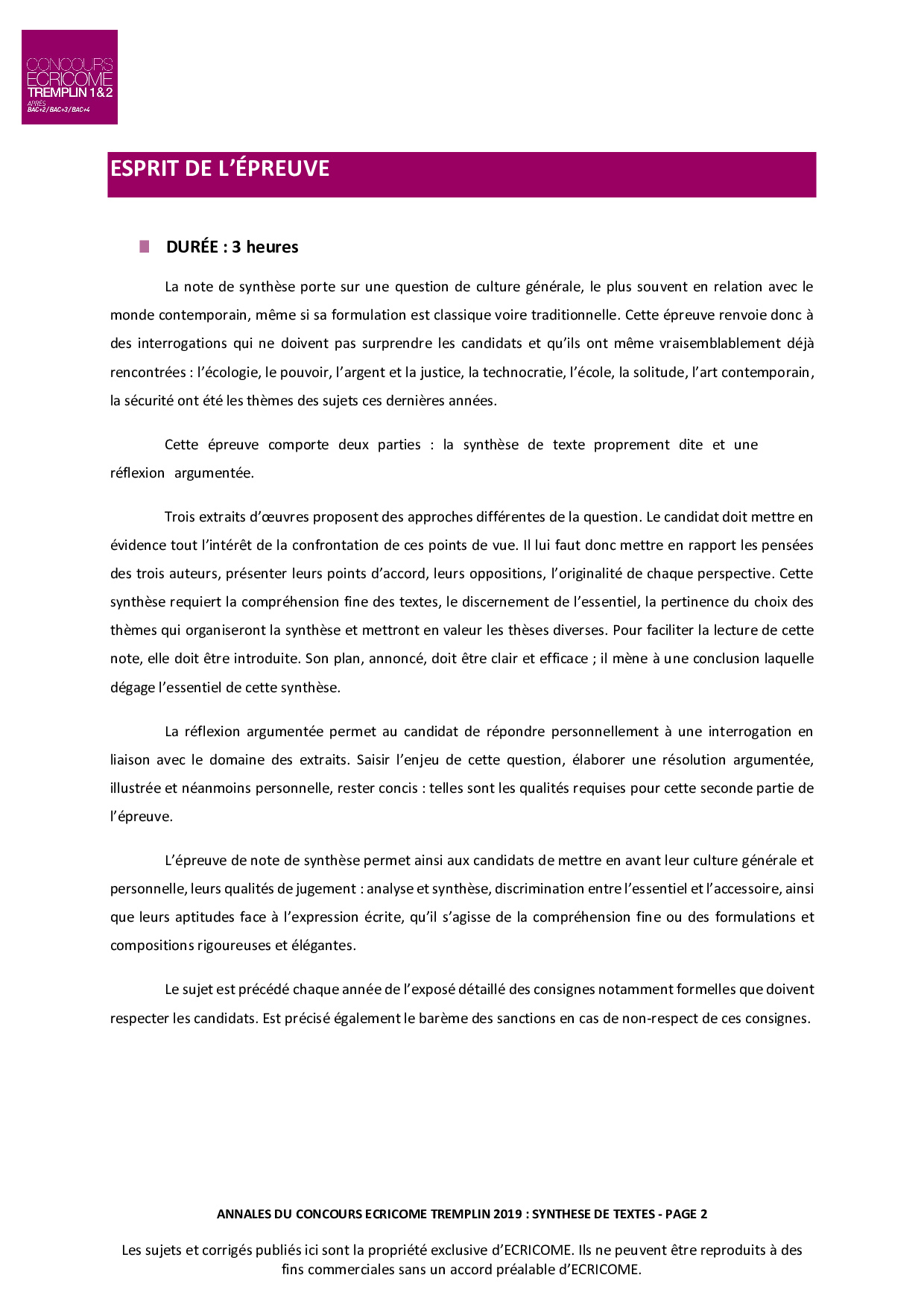 Concours Ecricome Tremplin 1&2 2019 - Note de synthèse (Corrigé)