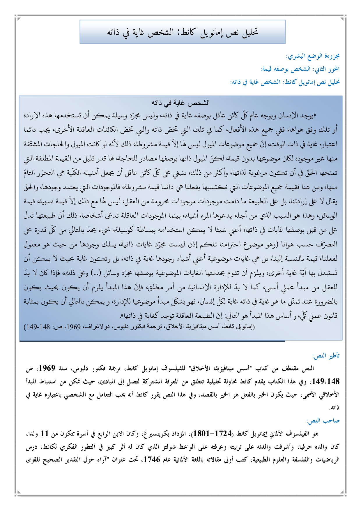 تحليل نص إمانويل كانط: الشخص غاية في ذاته