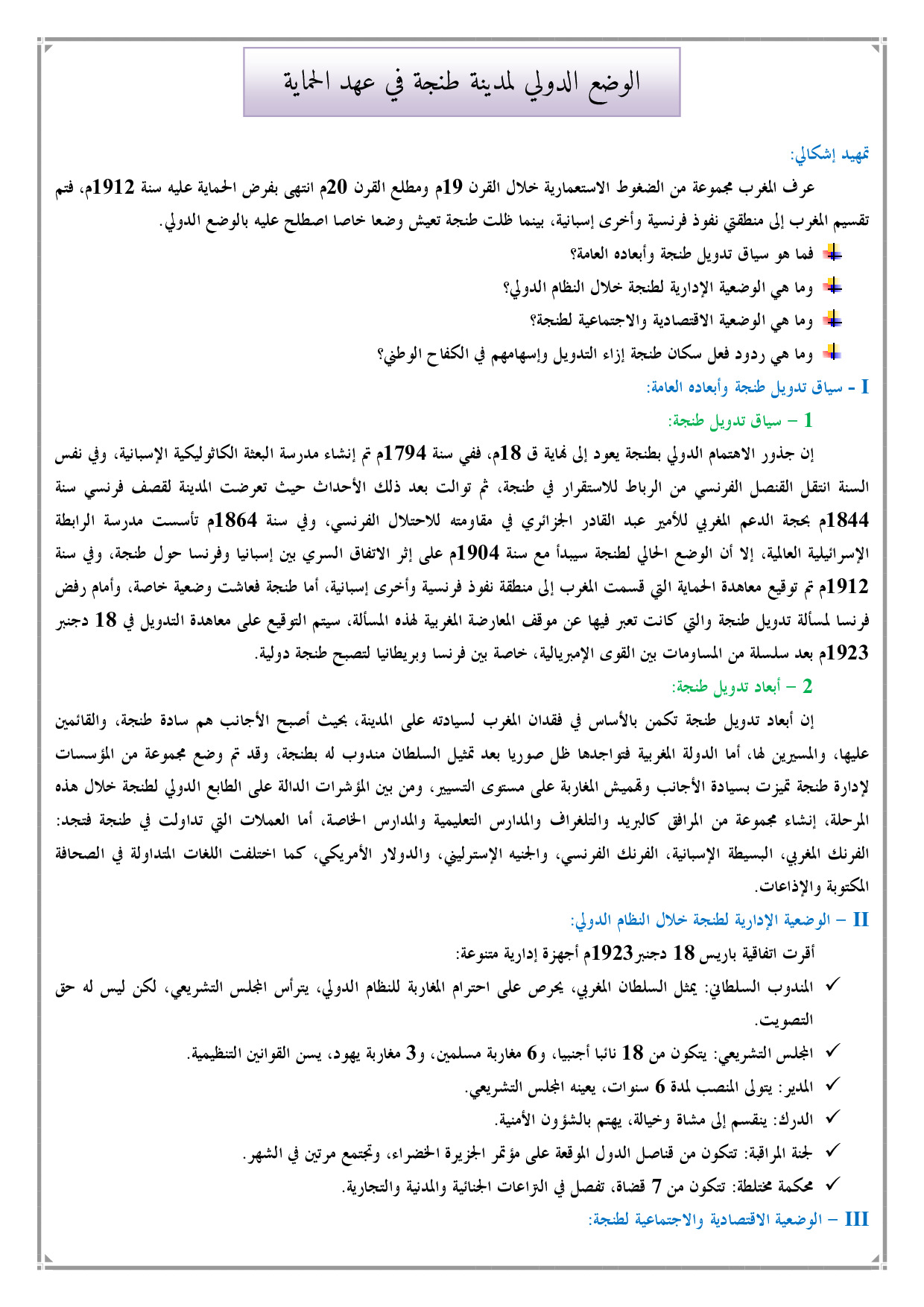 الوضع الدولي لمدينة طنجة في عهد الحماية